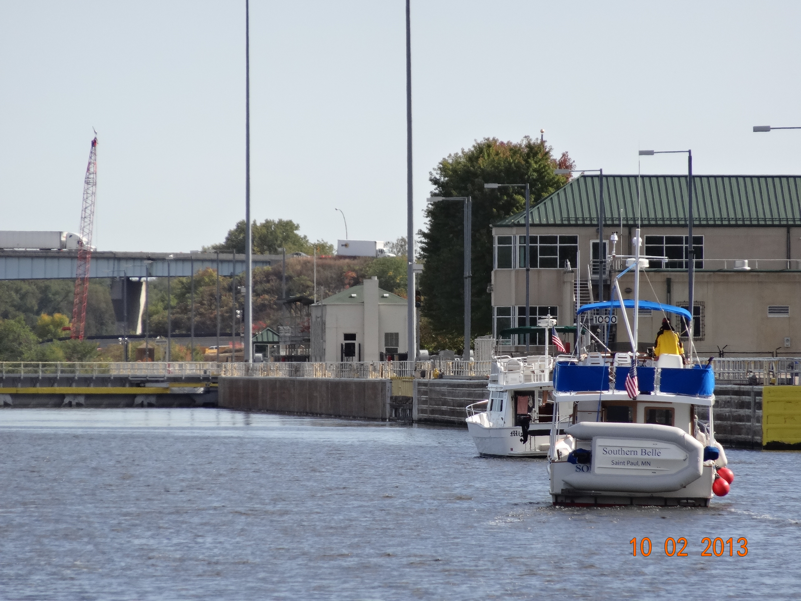 We were able to float free in Lock and Dam #4, that was different. At Lock 5A we paired up with two trawlers that were traveling South, Southern Bell and Mystical