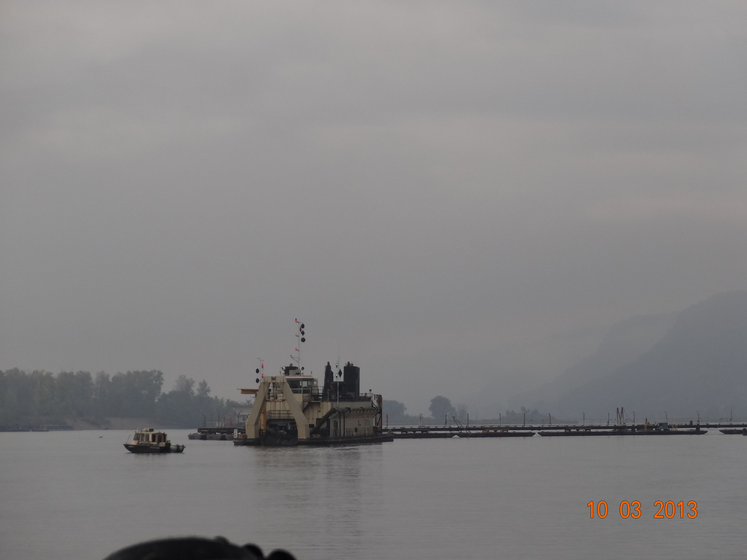 The dredge covered the entire span of the river.  They had their Pilot Boat, which is to the left of the dredge in the picture, take us behind the red marker and show us the way to get around.  They also made sure we had plenty of water so we didn’t run aground.  That was really nice of them.