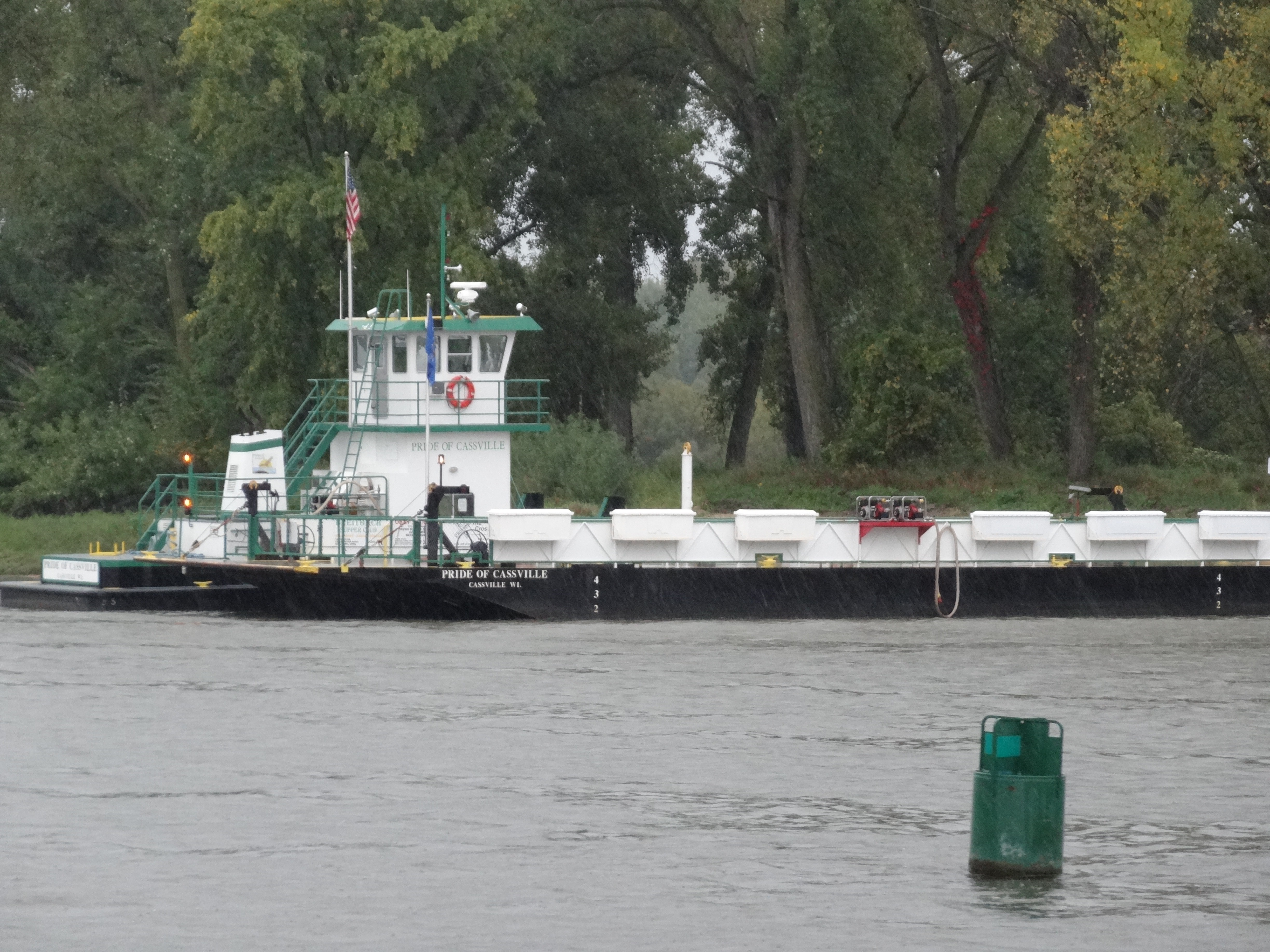We learned today that you should always let the lock know you are waiting.  We got to lock 13, there was a barge coming out and 1 waiting to come in.  Gary figured we were in for a long wait.  While the one barge pulled out, the green light came on (you have to wait for the green light before you enter the lock), I told Gary we should call them to see if there was another barge waiting on the southern part of the dam.  When I called them, they said, “we gave you a horn and a green light, come on in and we’ll lock you down.”  Lucky for us and a good lesson learned.