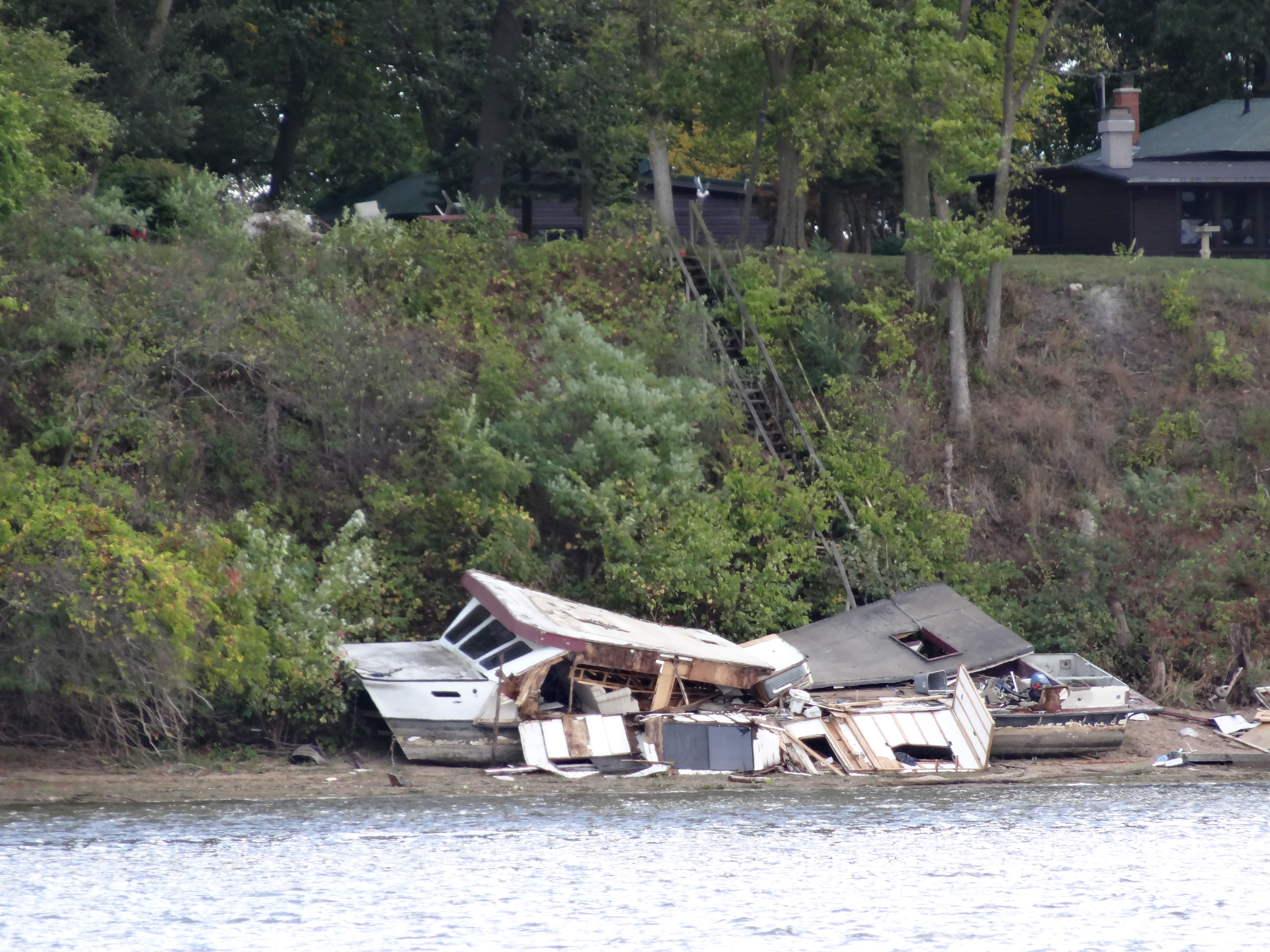 We saw this boat close to the Quad Cities.  Holy Smokes!  What happened to that??