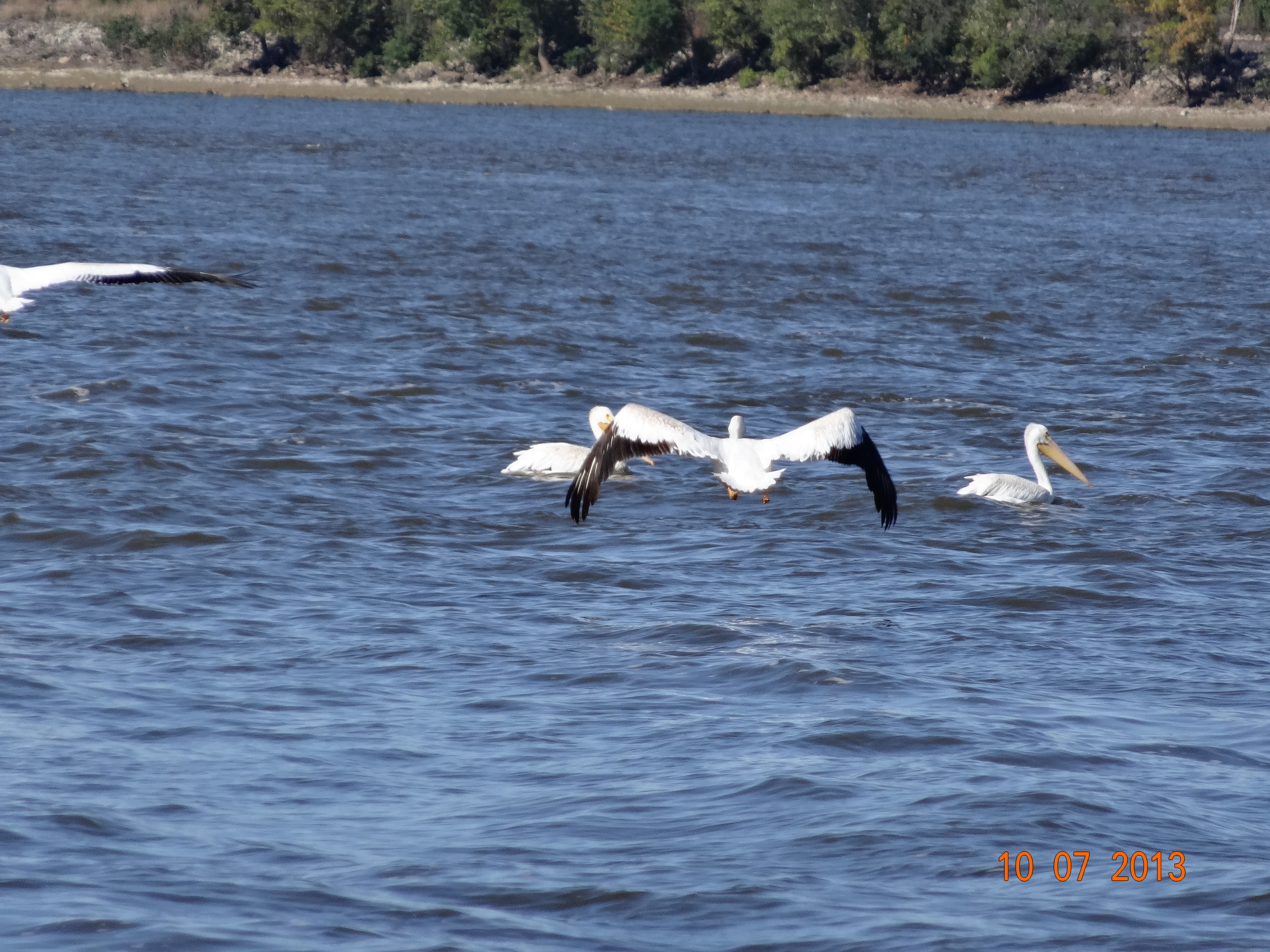 There are a lot of pelicans by shore and also when you some out of the locks, here are some pictures of them