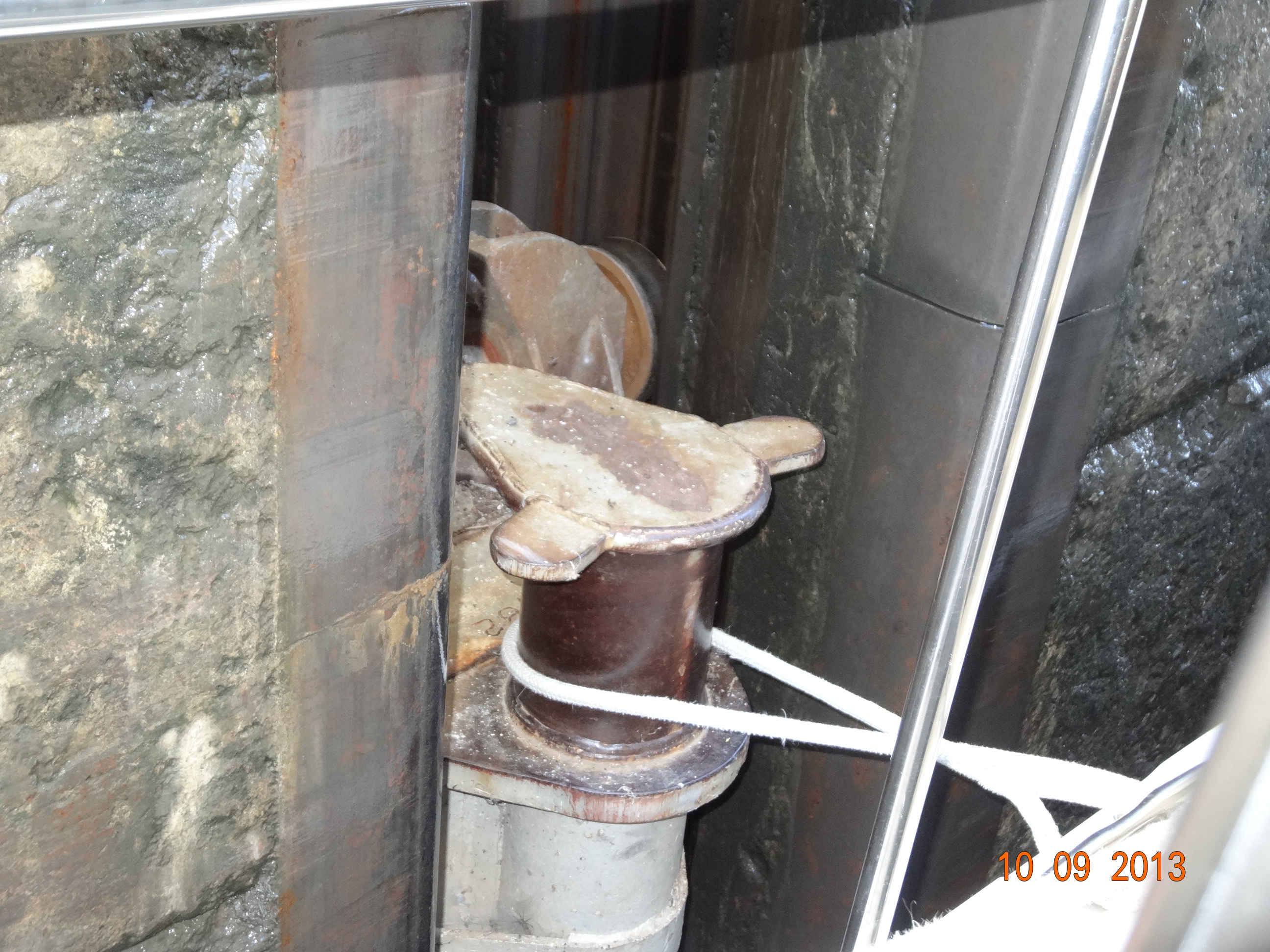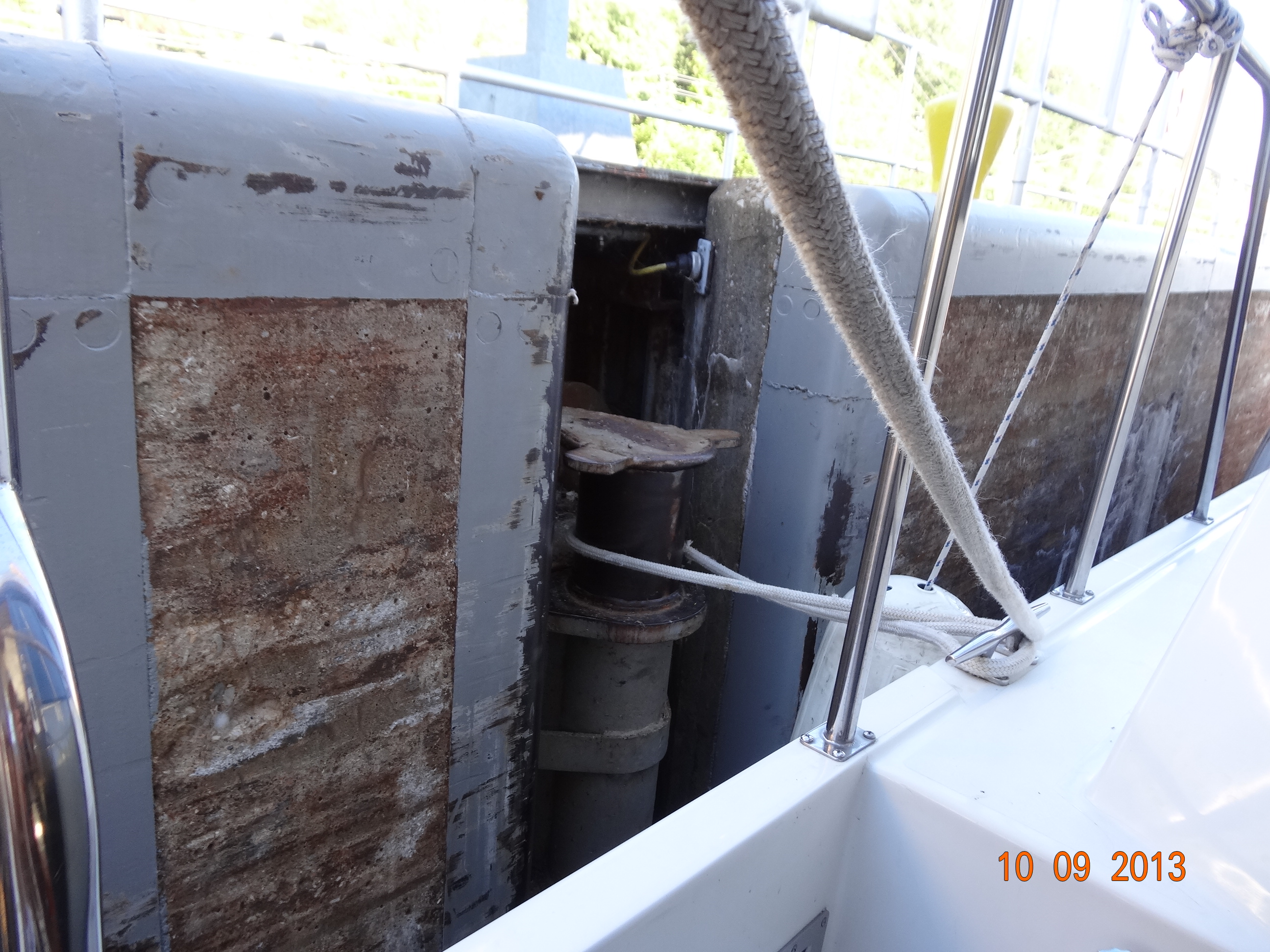 Lock 19 is really different from any lock I have been in so far.  They dropped us 38 feet and instead of ropes to hang on to, they had bollards.  With the bollards you tie your boat to it and the bollard goes down as the water drops.