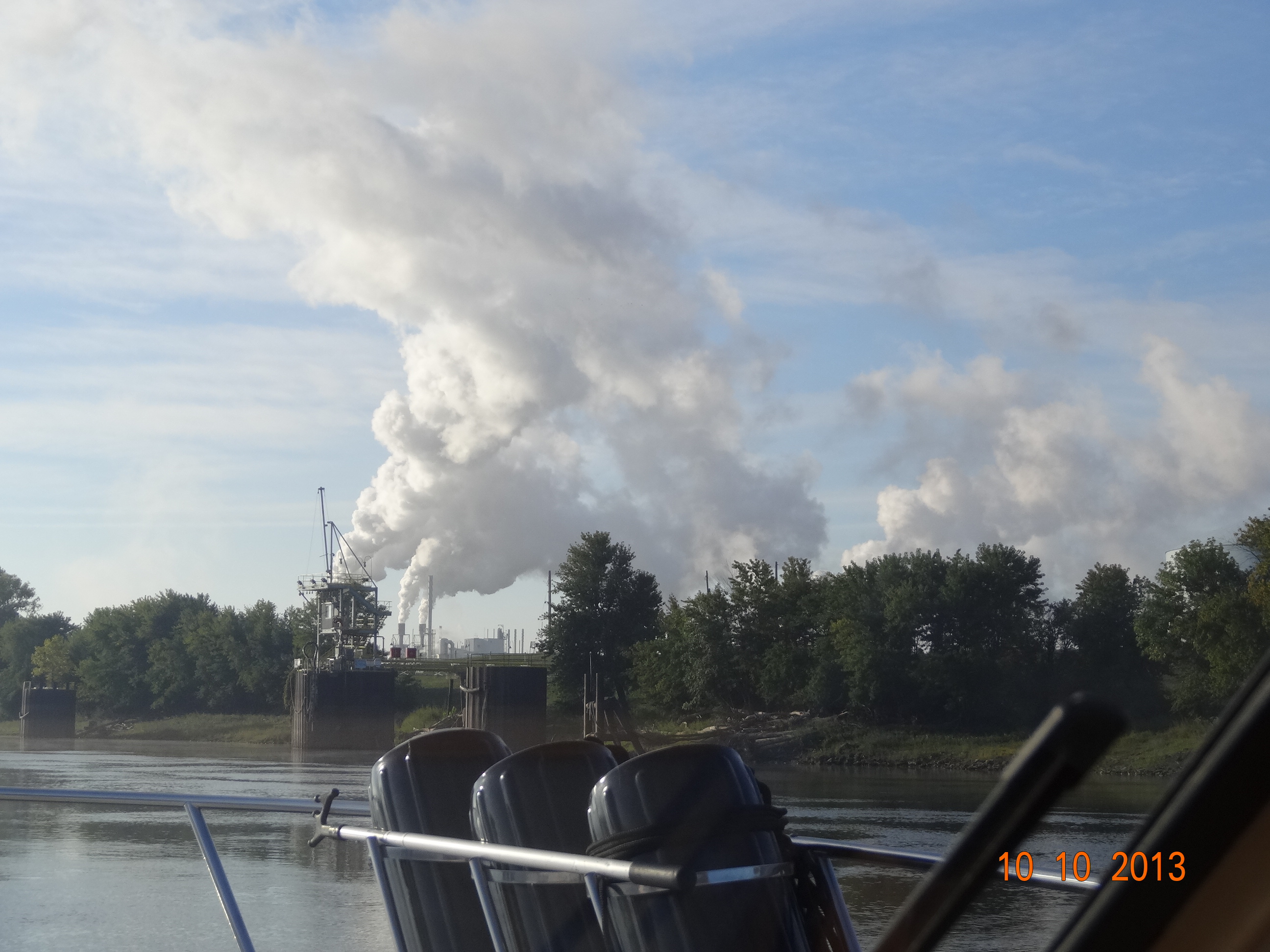 October 14, 2013 – we got up at 6 and left the anchorage at 7. We traveled with the sailboat and the CHB for most of the day. We passed by Cape Girardeau at 9:30.