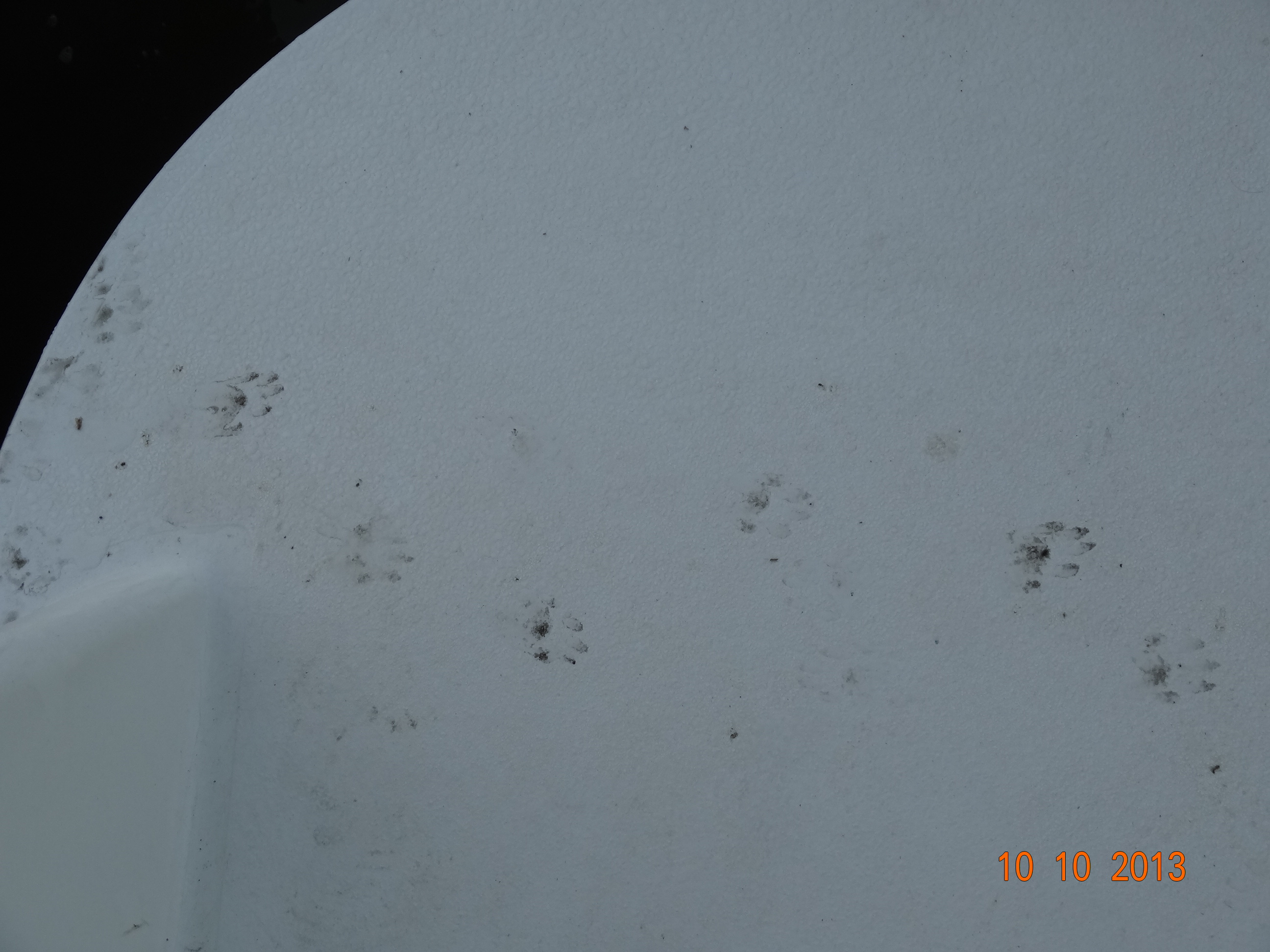October 10, 2013 – we left Quincy Yacht Harbor at about 7:15 heading for lock 21. There were little foot prints or should I say Paw prints, on our swim platform