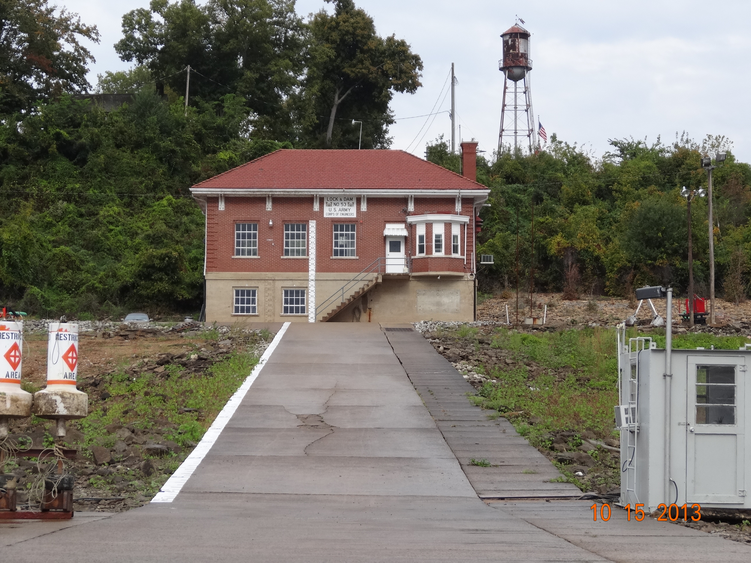 We got to Lock 53. A few days before they had the wickets down (I have no idea what a wicket is but I am glad they put them up), boats were just driving over the wickets so they didn’t have to lock through. Apparently the river was too swift and the tows couldn’t make it over them so there was quite a back up. When we got there though, got right in. Man, this one was old.
