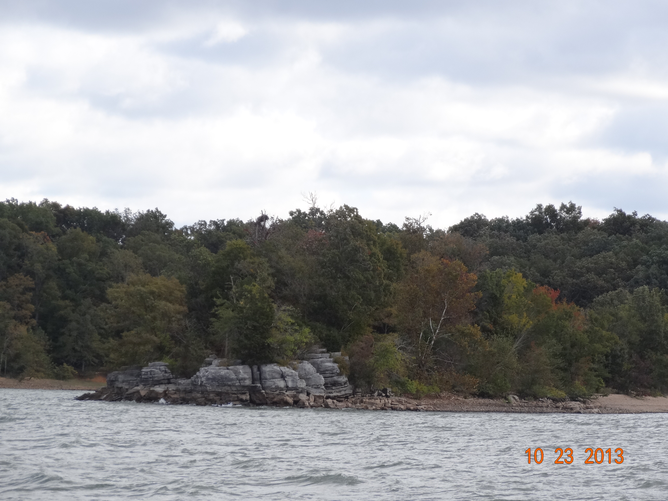 We didn’t see any boats except a few fishing boats.  The river is VERY wide and was quite rough.  Luckily the waves were at out stern so we did OK.  The terrain has changed here on this river.  It is more rocky and the bluffs are higher, not as much sand beaches.  There are some cool inlets that look neat if you knew where you were going.  We just followed the sail line on the Garmin.  We didn’t want to end up with any prop damage.