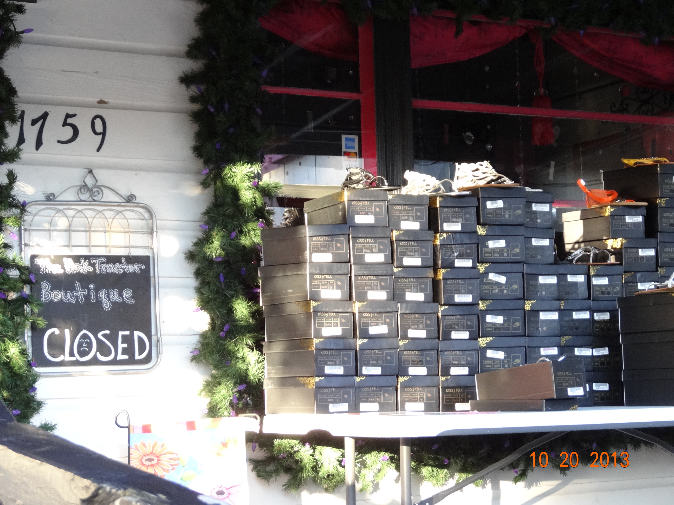 And only in a very small town would you find a store that had product sitting out on their deck.  The store was closed and they just left it sitting out all night.  Now that is trust! Granted they were ugly shoes and no one would probably want to steal them but, just saying…..