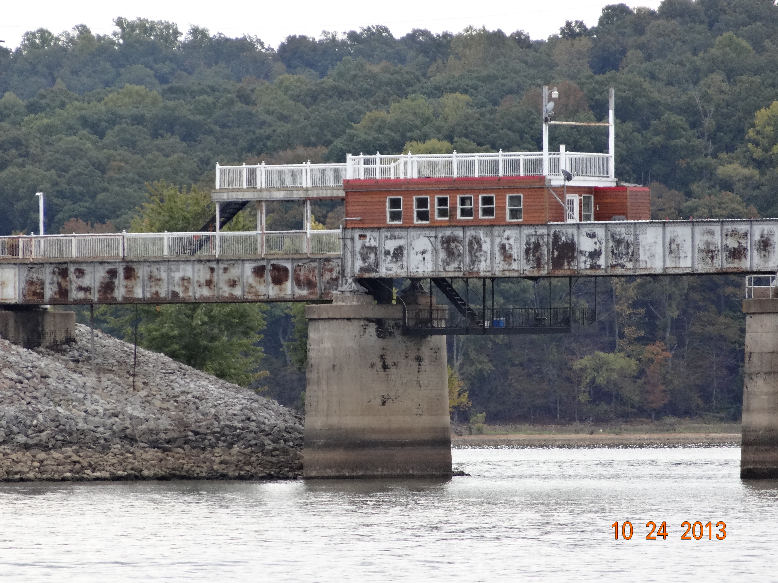 The Tennessee is very wide and deep in the channel, 40 to 50 feet. There are a few lines we could follow on the Garmin but we are just sticking to the sailing line. As we travel we can see some sticks, dead heads and birds standing on the land so we know it is shallow in parts. Better safe than sorry! There was a 43 foot SeaRay that was at Green Turtle. He left on Tuesday and decided to take one of those other routes that show up on the Garmin cause he thought it looked more scenic. Crash, Bang, Boom! He had to call Tow BoatUS to pull him in. Now he has to spend 2 weeks at Green Turtle waiting for shafts and props before he can continue on his merry way. That was an expensive scenic route 🙂