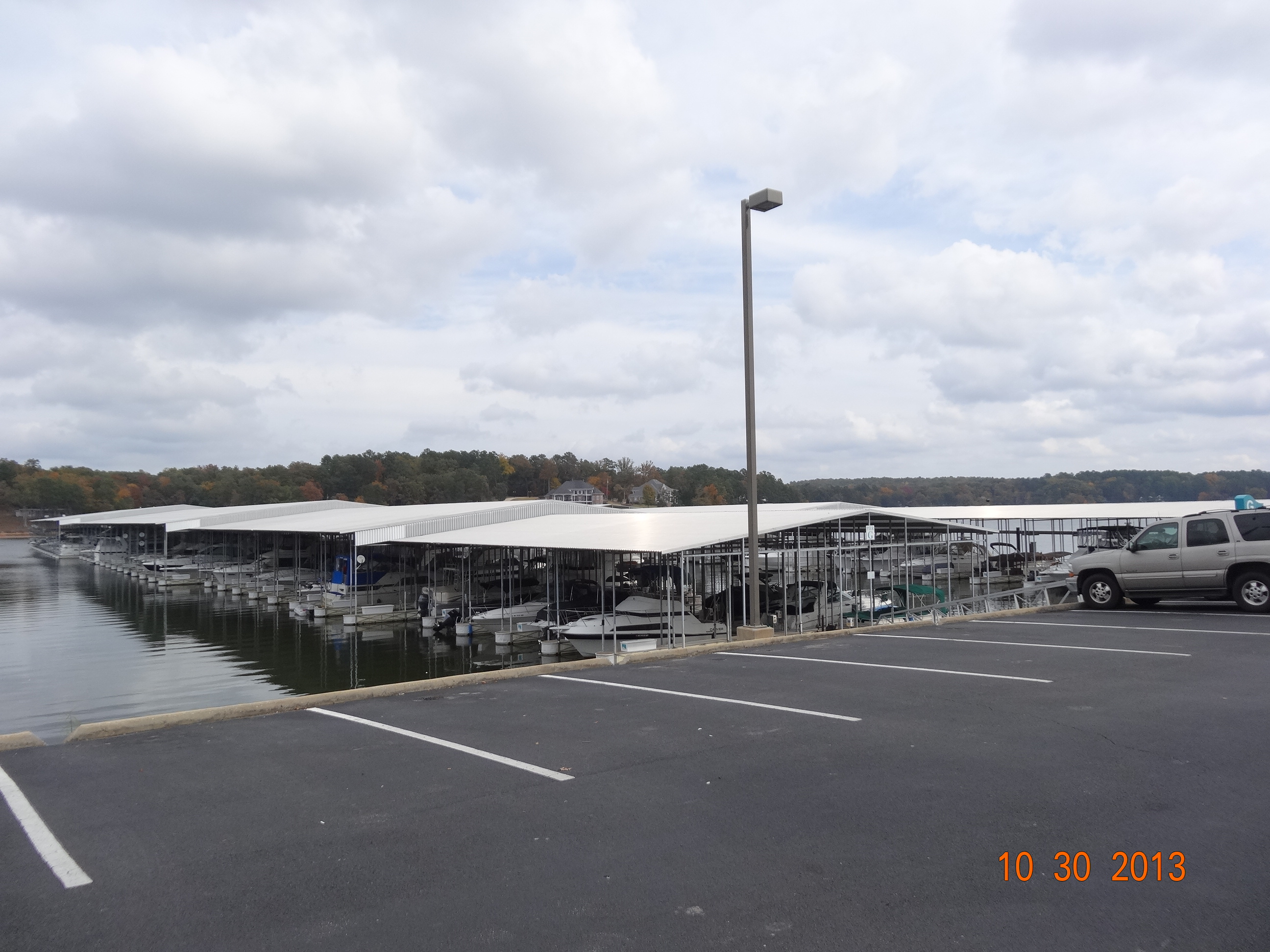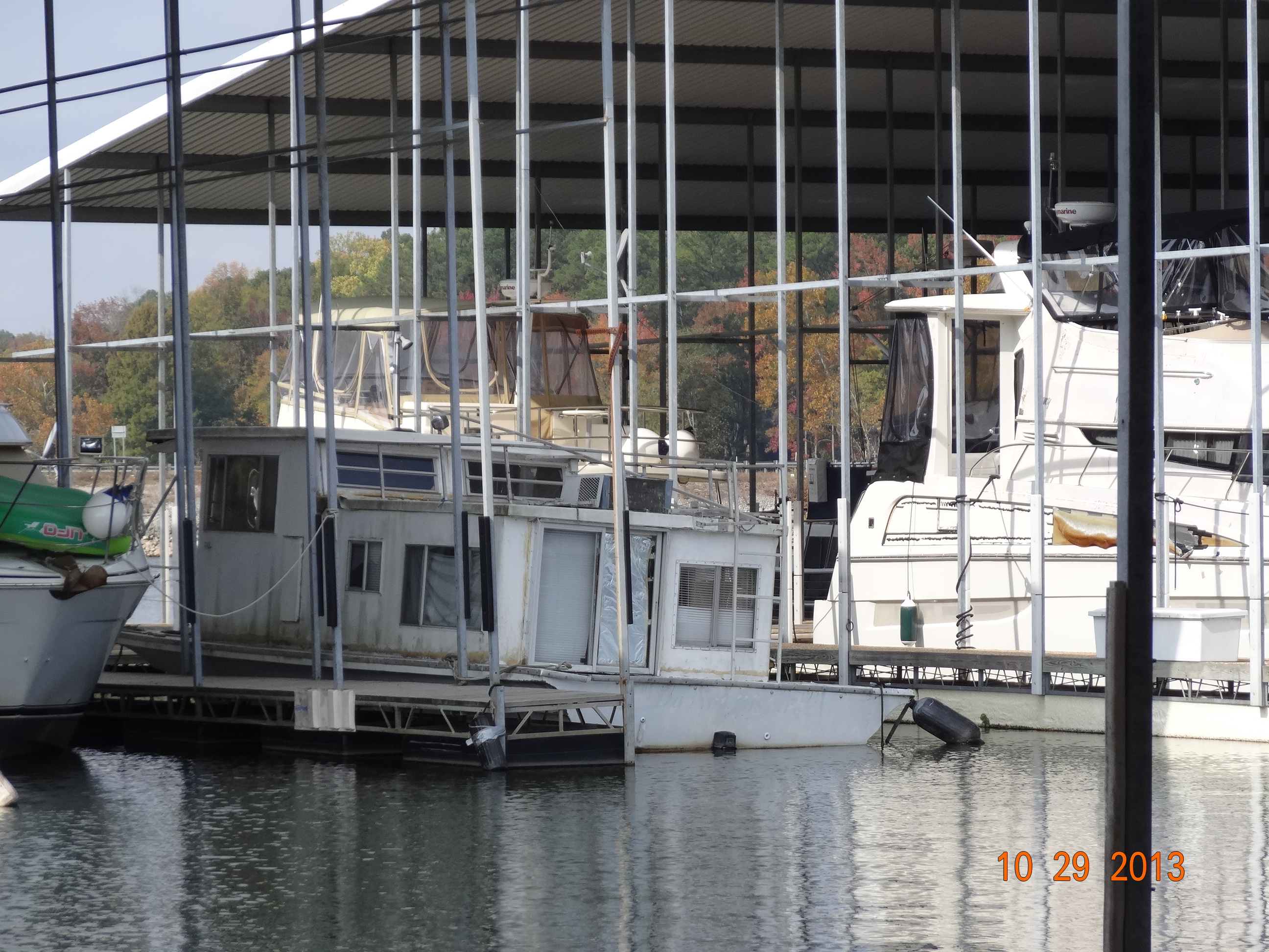 Here are some pictures of the piers for this marina.  They are quite long.  As we need a bigger slip, we are far out on the end.  We have decided to stay here for at least a year so we rented slip G52 until 12/31/2014.  We figured we should live here for a full year to see what the weather is like year round before we can decide if we want to stay here longer.  We are still taking the boat down further south in January thru April, but by having an annual lease we will be assured a slip to bring the boat back to and also have a place to leave our van if we need to.  Here are a couple of pictures of pier G where we have the boat