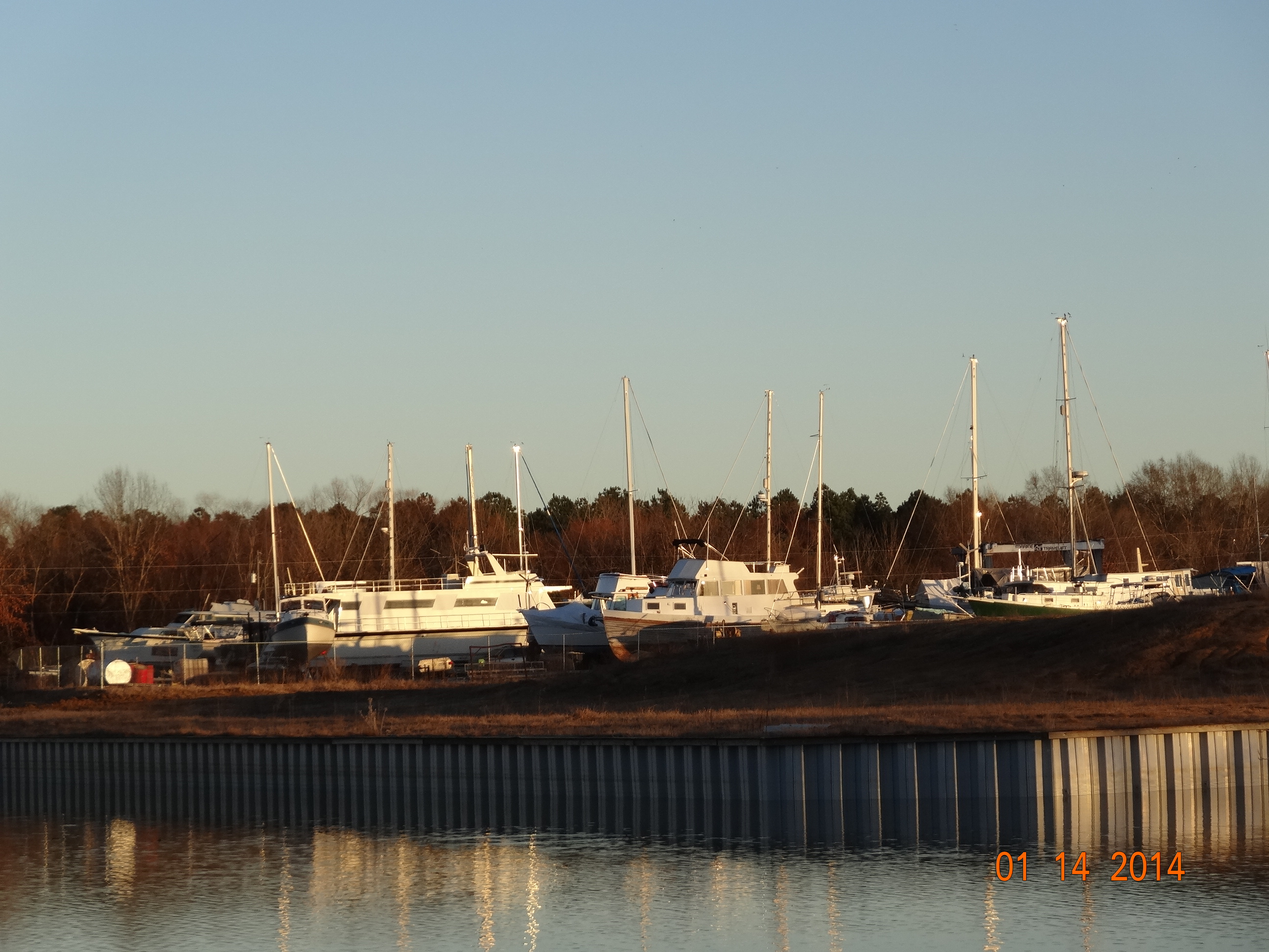 The have a golf cart at the marina you can use to get over to the gas dock where we had to go to pay. They told us to go ahead and use it. Ooooooh, now that sounds like fun :). I took the wheel and we started off, as we drove we saw the road we should take to get to the gas dock but with the abundance of rain they have had and the fact that there were big dump trucks working that area, the road looked like fresh gooey mud. No way was I going to drive thru that! I’m not getting out and pushing the cart thru that when it got stuck! So I took the side of the 45 MPH road. We got to the gas dock and paid and found out we were not to take the golf cart on the road because it wasn’t street legal, whoops! So Gary drove back to the marina. When we got to the muddy part he just kicked it. Mud was flying everywhere but we made it across. No mud on us but the cart was a mess. We just parked it in it’s spot and sneaked away.