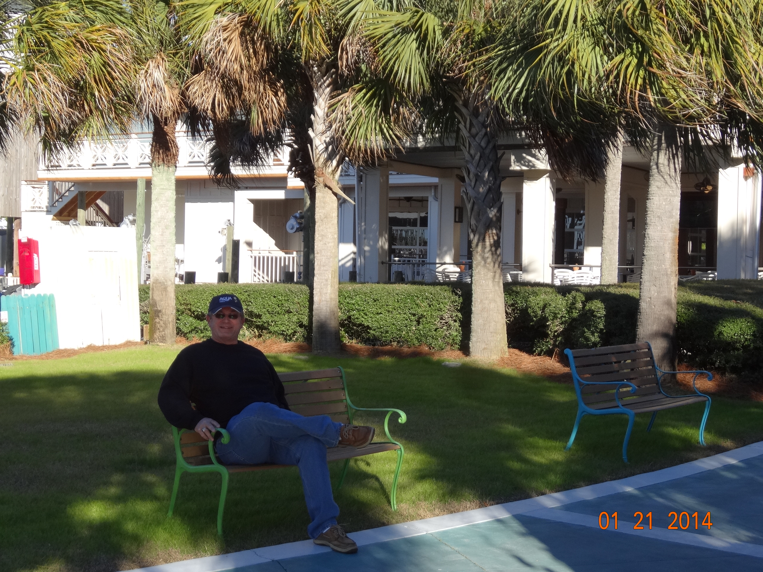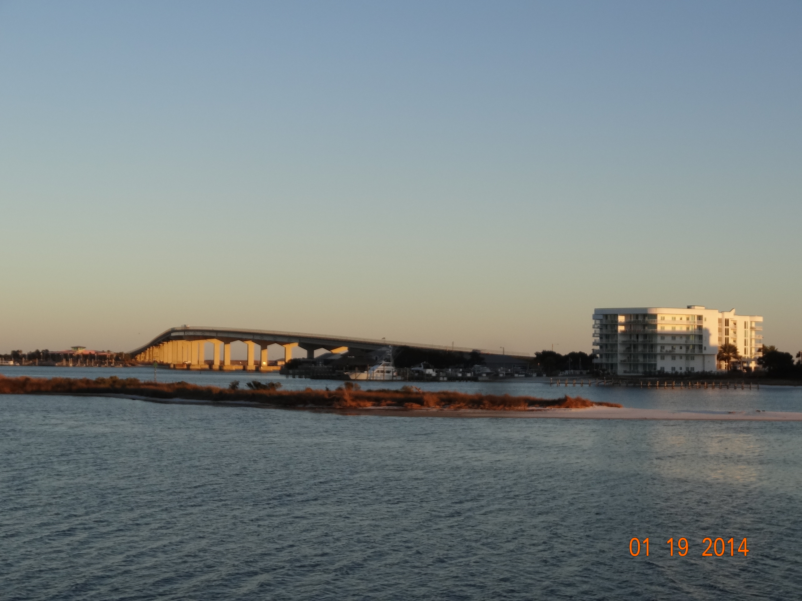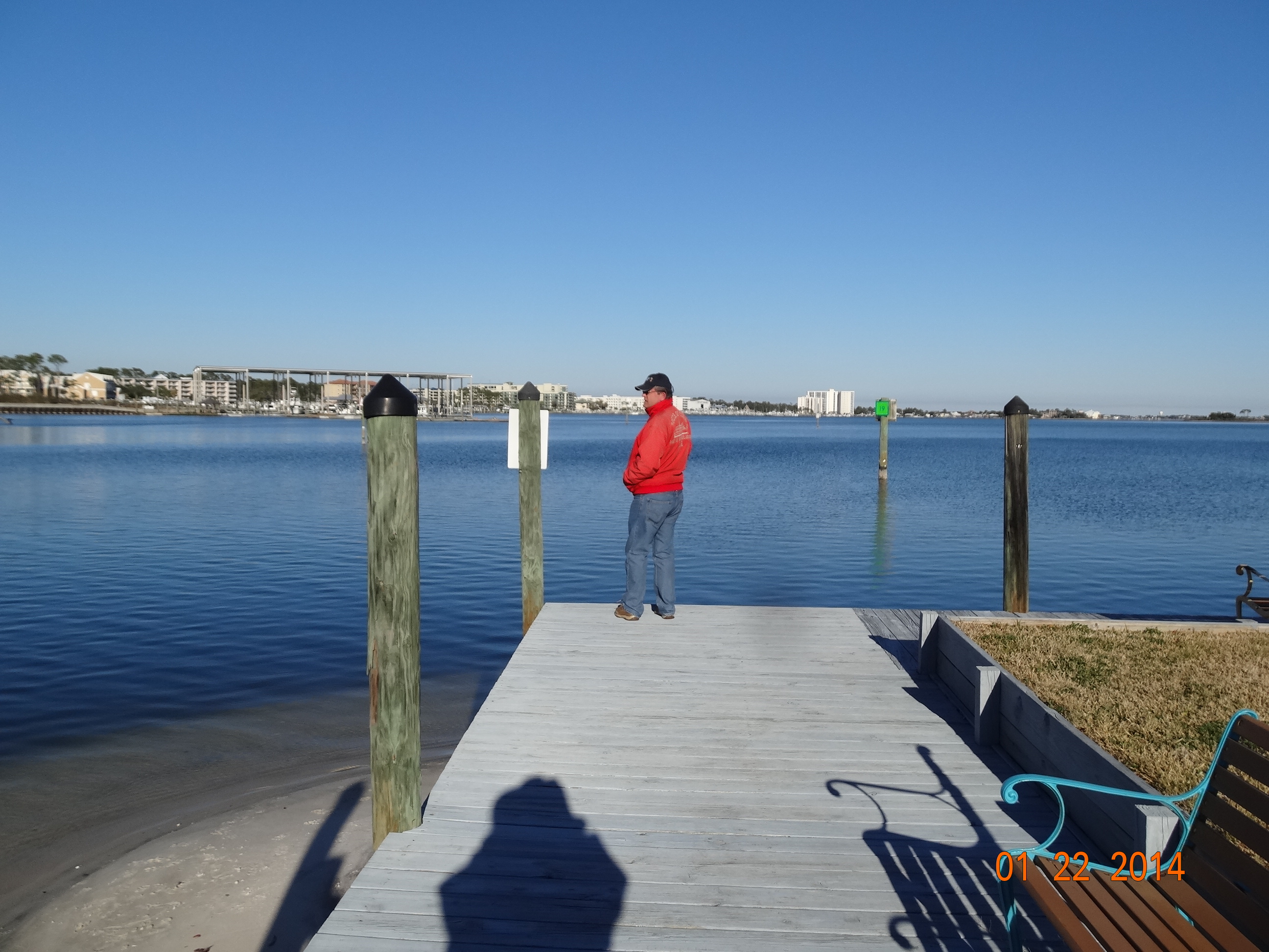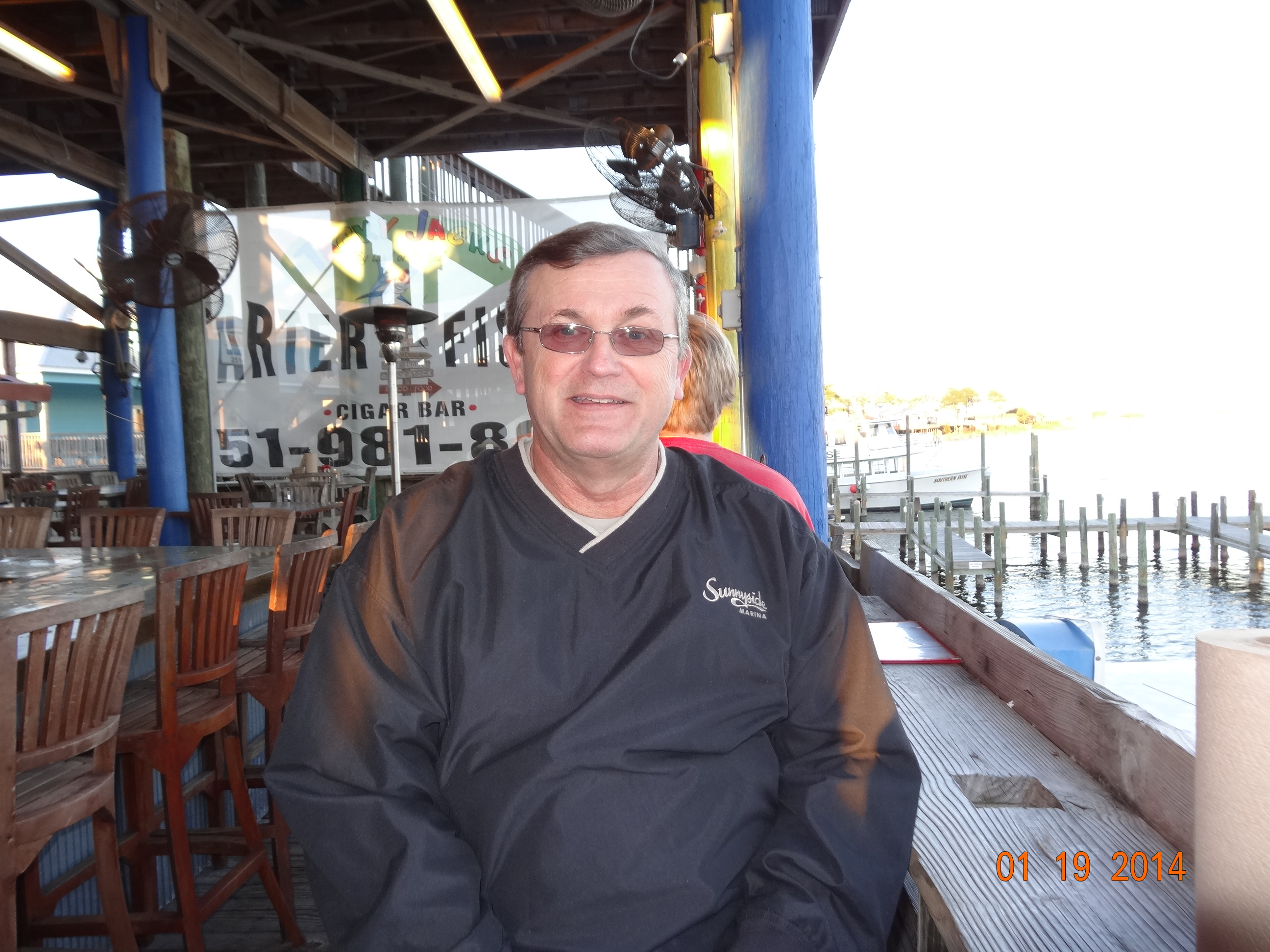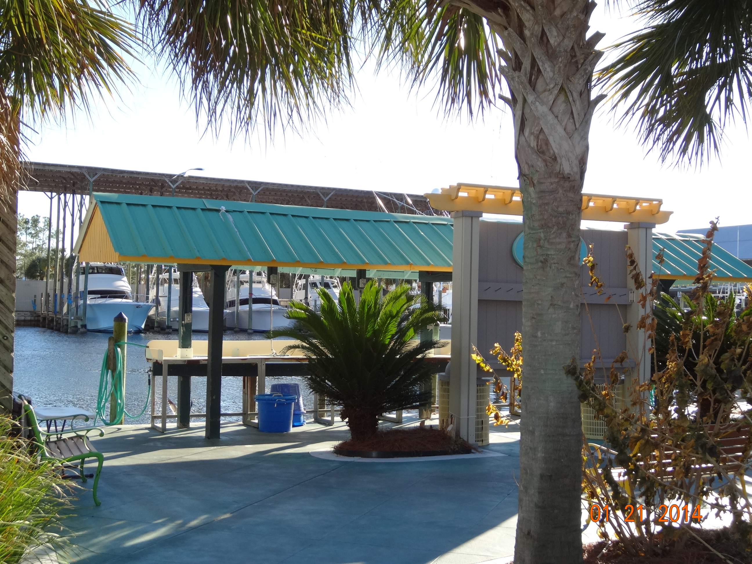 TheThis marina is located within a few miles of the Gulf of Mexico.  Across the street there  are several restaurants within walking distance.  We visited our firs onet, Tacky Jacks, on Sunday the 19th.  They had reasonable prices and a deck you could have dinner on.  Here is Gary and a view from the deck