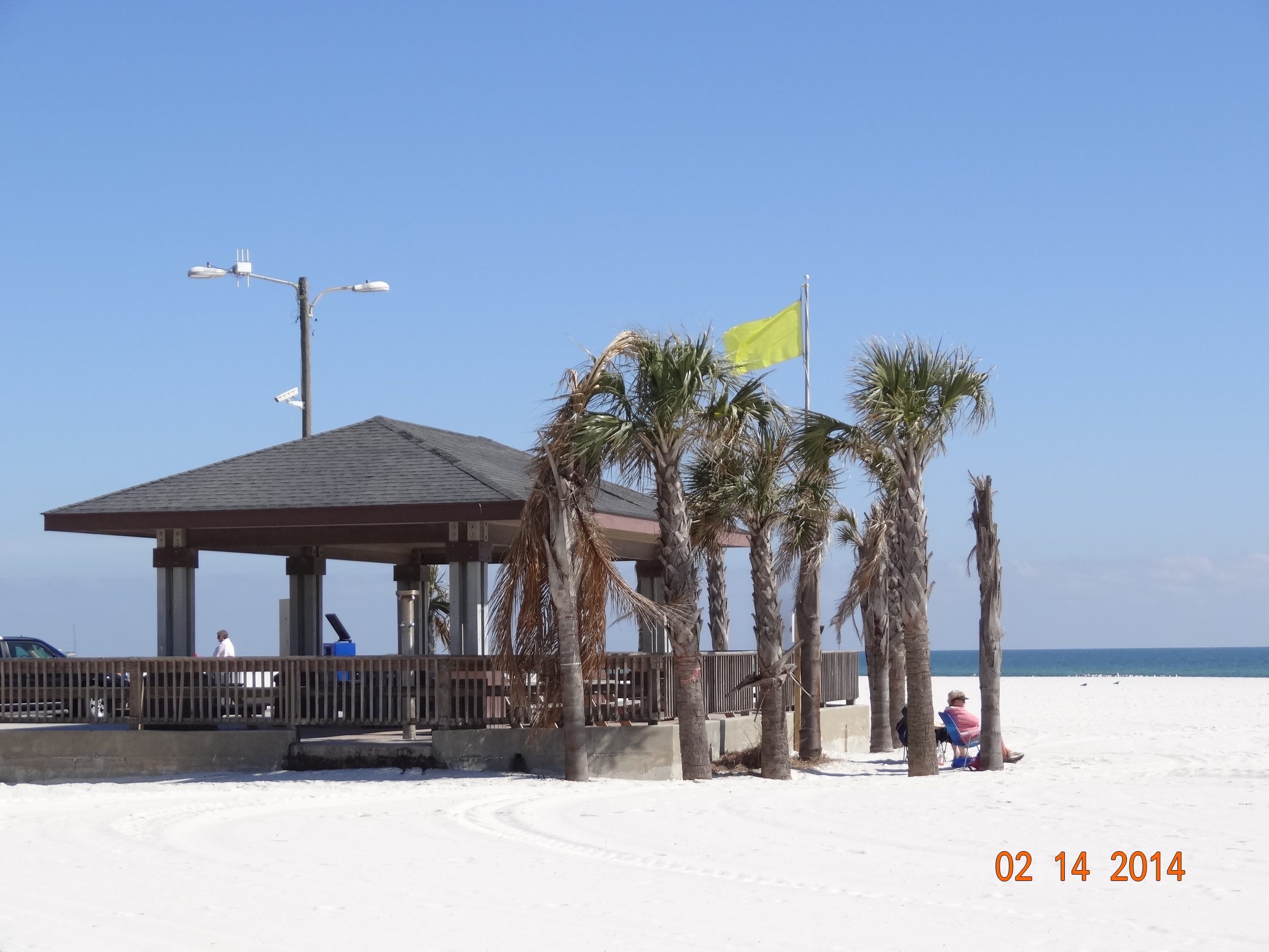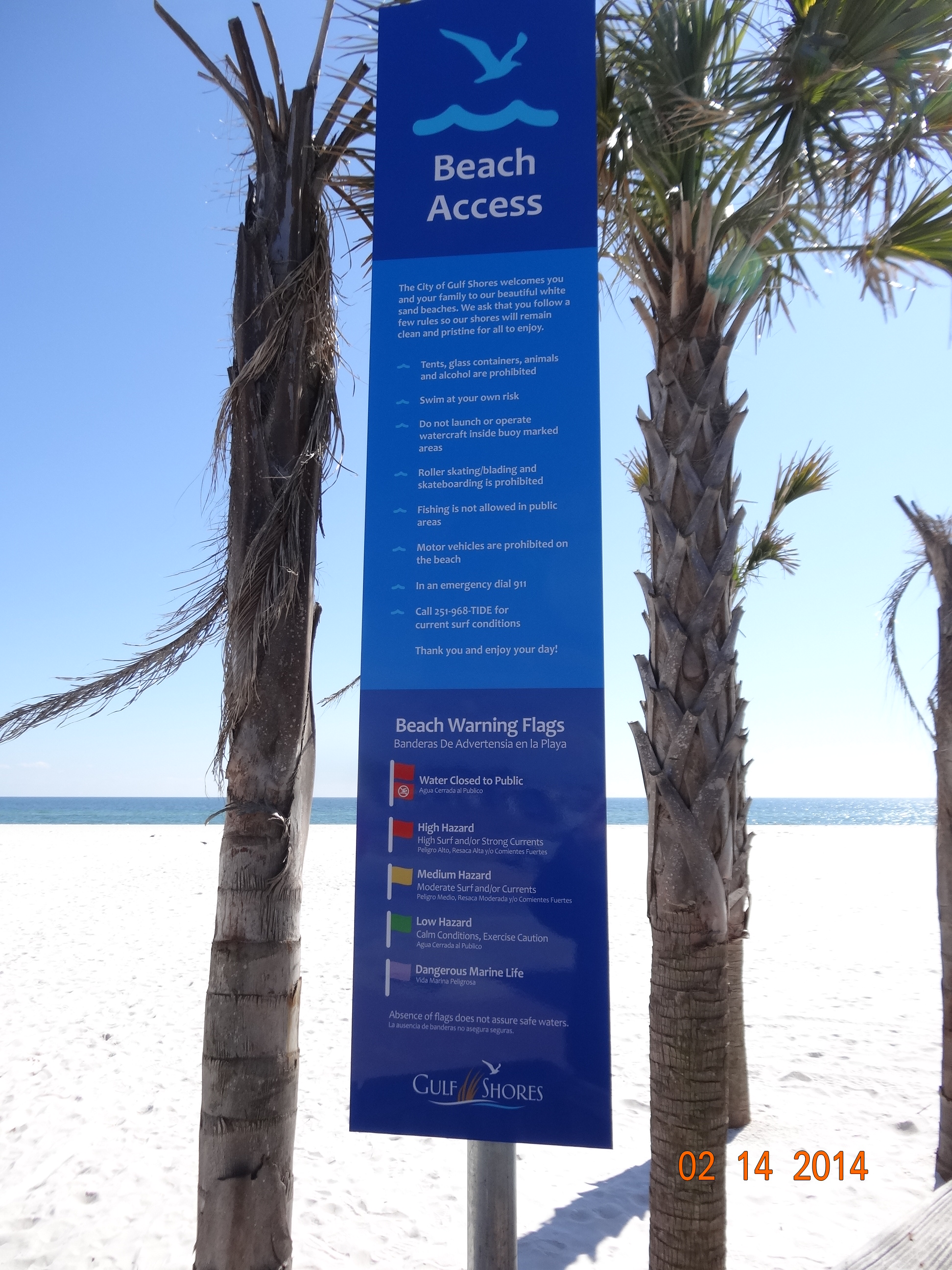 Periodically, they have flag flying to show you the beach conditions like the yellow flag in the picture above. Here is a list