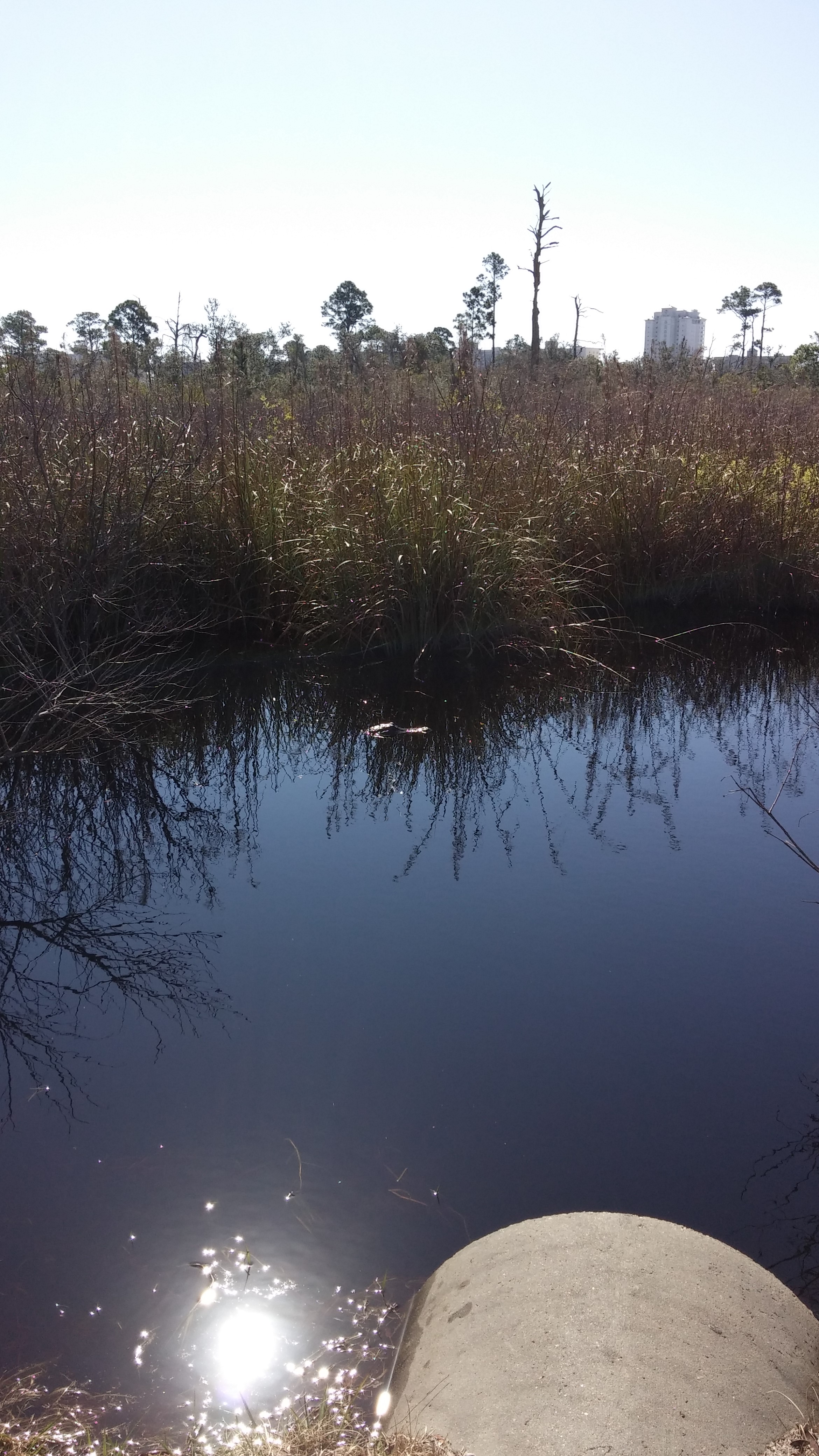 Our vigilance has finally paid off.  We finally saw the alligator!  We actually saw her a few more times and her babies but the pictures aren’t much better.  That is ok, that is as close as I want to get to one of those :).