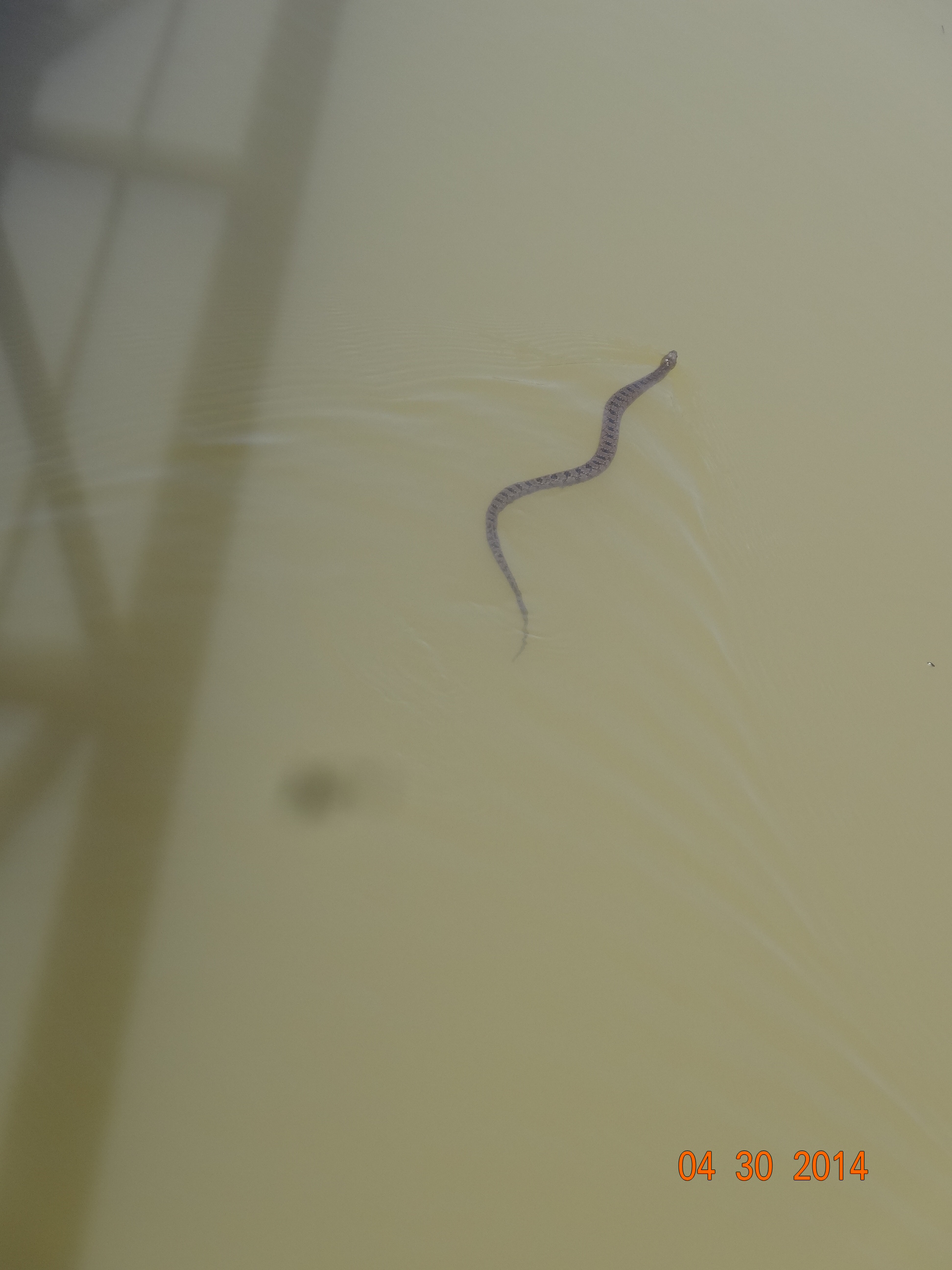 Remember the snakes I mentioned? Here is one swimming by the ramp we walk over to get to the parking lot