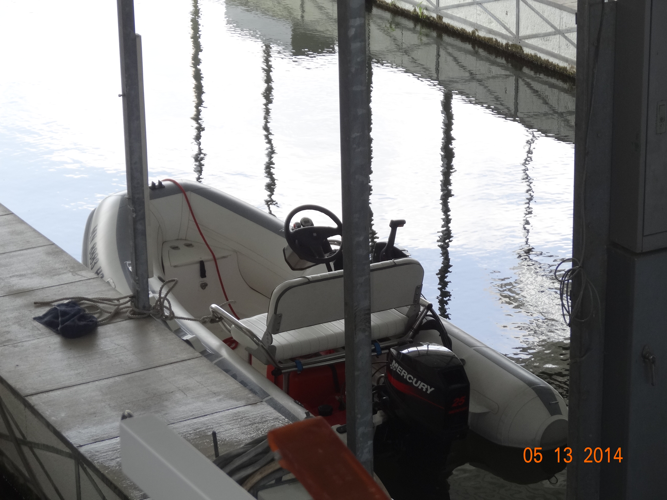 put on top of the boat right in hopes that we could get the hoist installed here at Aqua. As we traveled people would walk by our boat looking at the little boat on the roof with puzzling looks on their faces, than ask “How do you get that down?”, Gary would respond, “That’s our life raft, so when the boat sinks, we just jump in”. That really threw them for a loop. Well the marina here has been working on getting our hoist installed and after a few missteps, they have finally completed their mission.