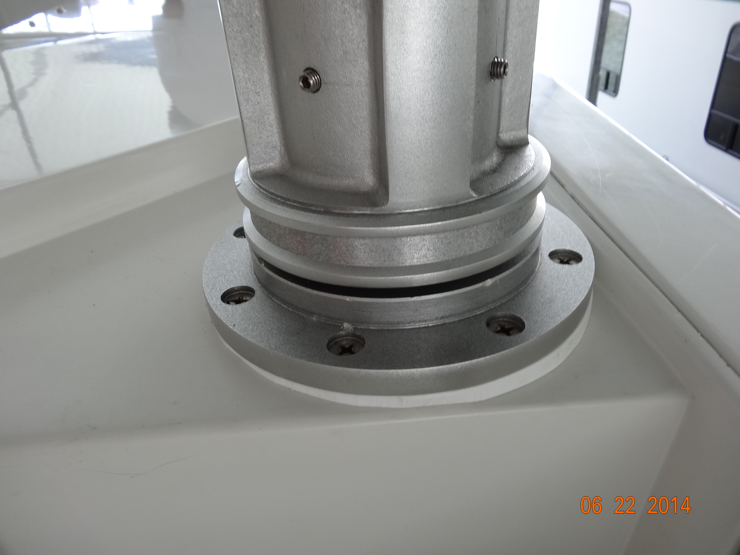 They had to build a custom base for the davit as the pole didn’t quite touch the floor