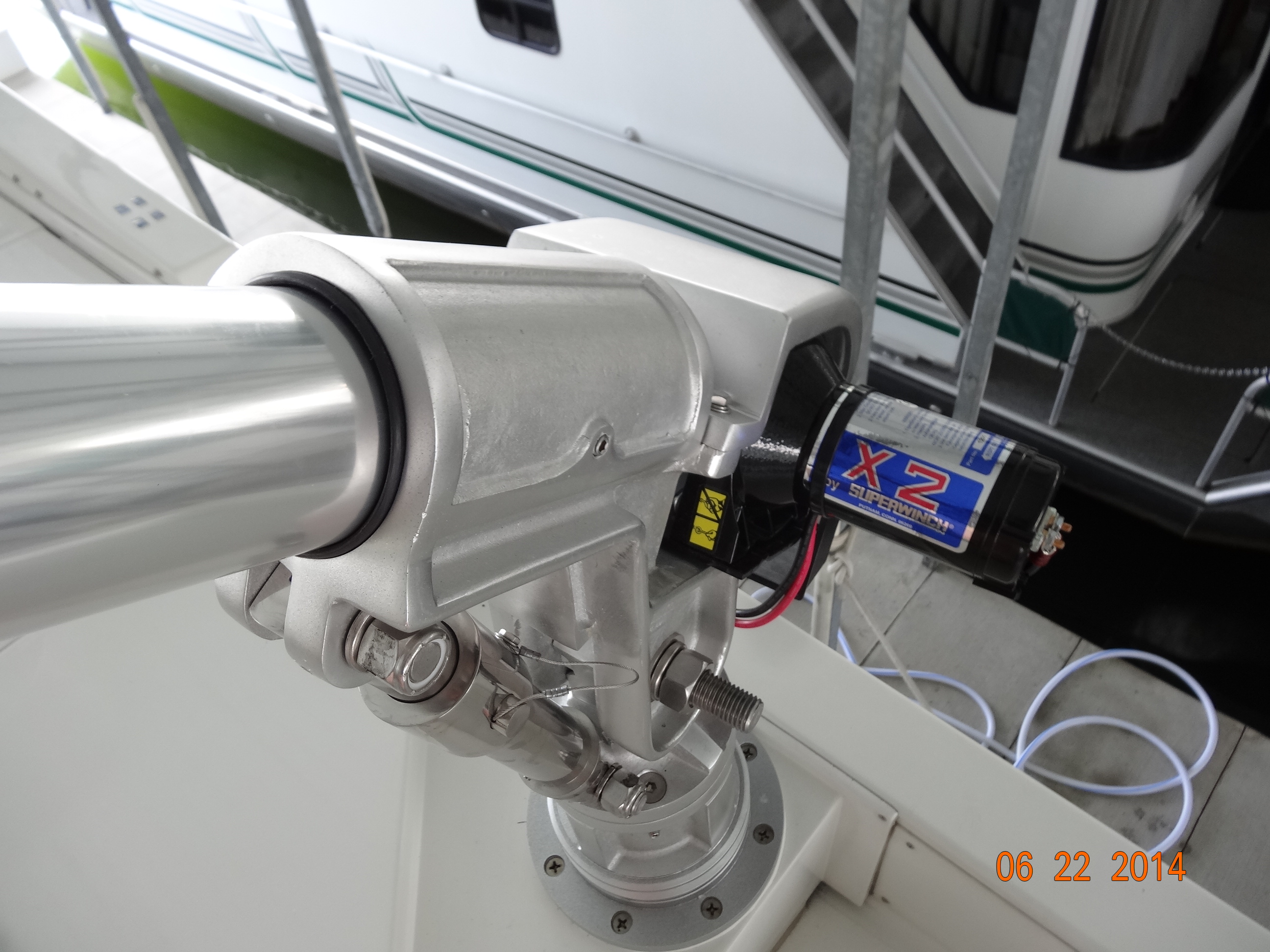 This was another problem, they had to made a special shim so the hoist was level, see that white strip between the hoist and the roof of the boat?