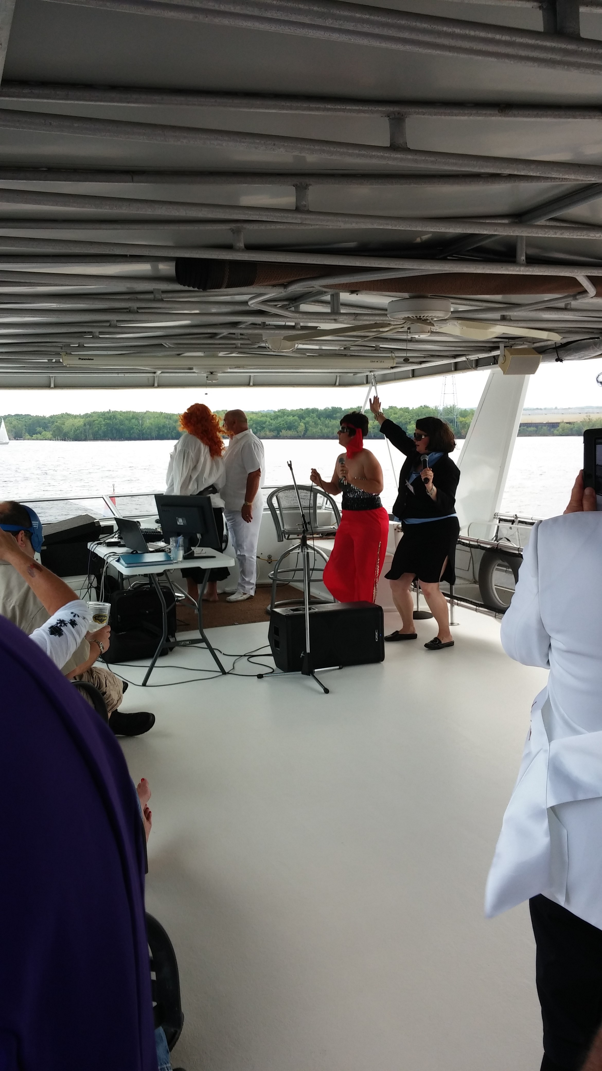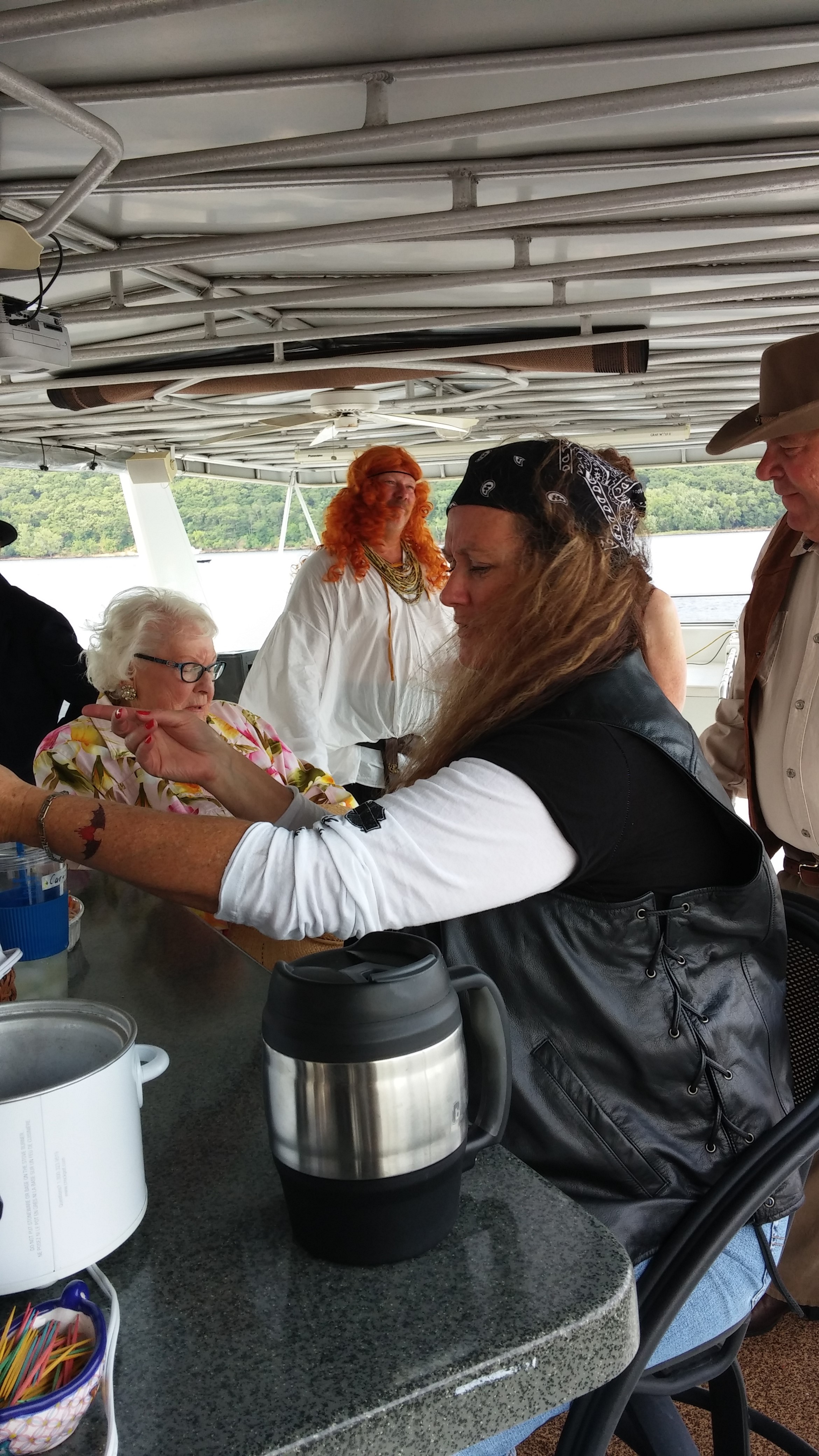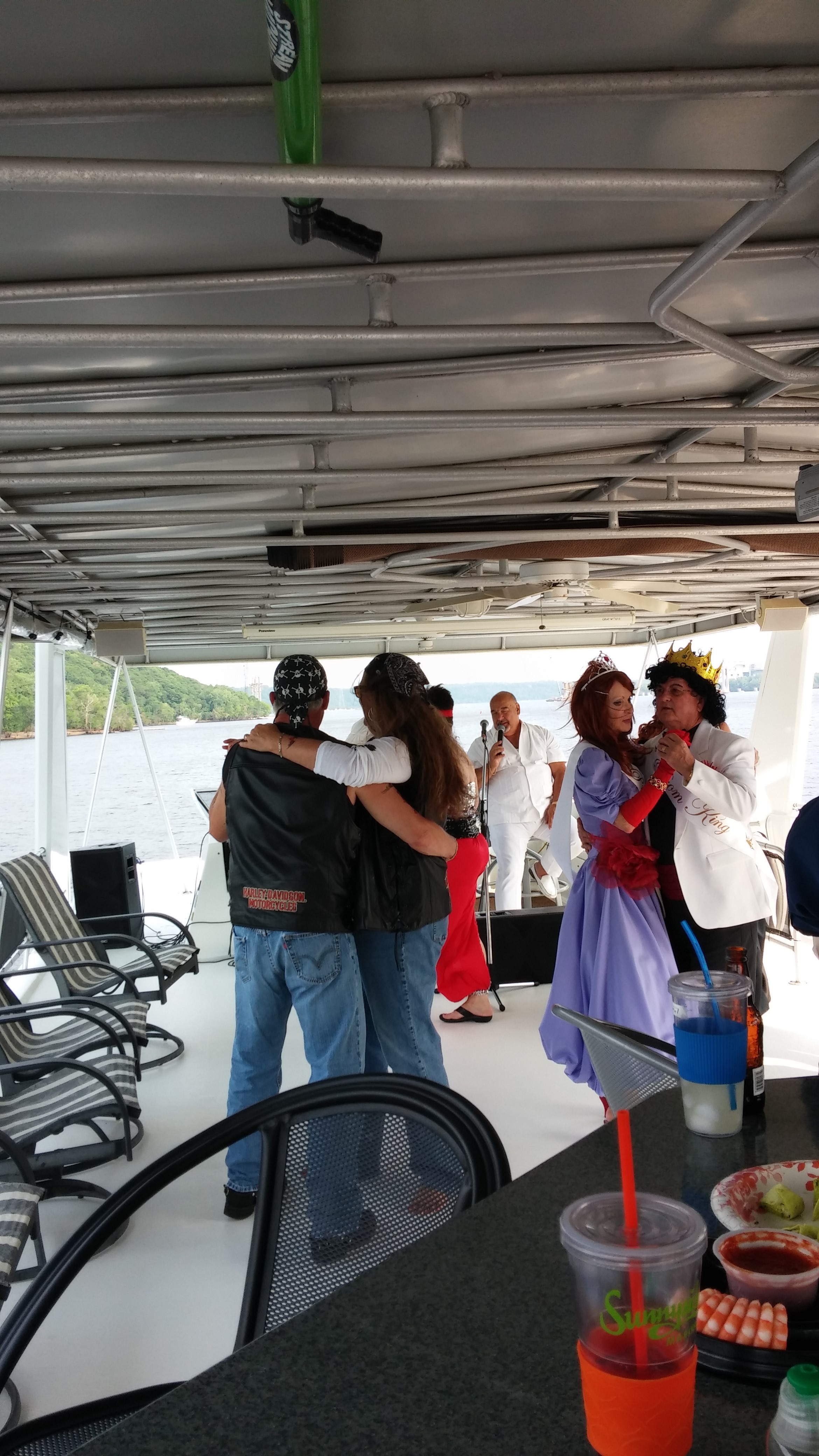 We were hoping it wouldn’t be all work and no play while we were here and luckily a few days later we were invited to a costume party. Here we were homeless and we had to dig up a costume. Off to Goodwill we went and had great success. Not the best costumes but they would have to do. The night of the party was beautiful. Not to hot, light breeze and we arrive at the 80 foot houseboat. Man, it was like a floating house. The fun times were to be had on the upper deck. And what good times were had!
