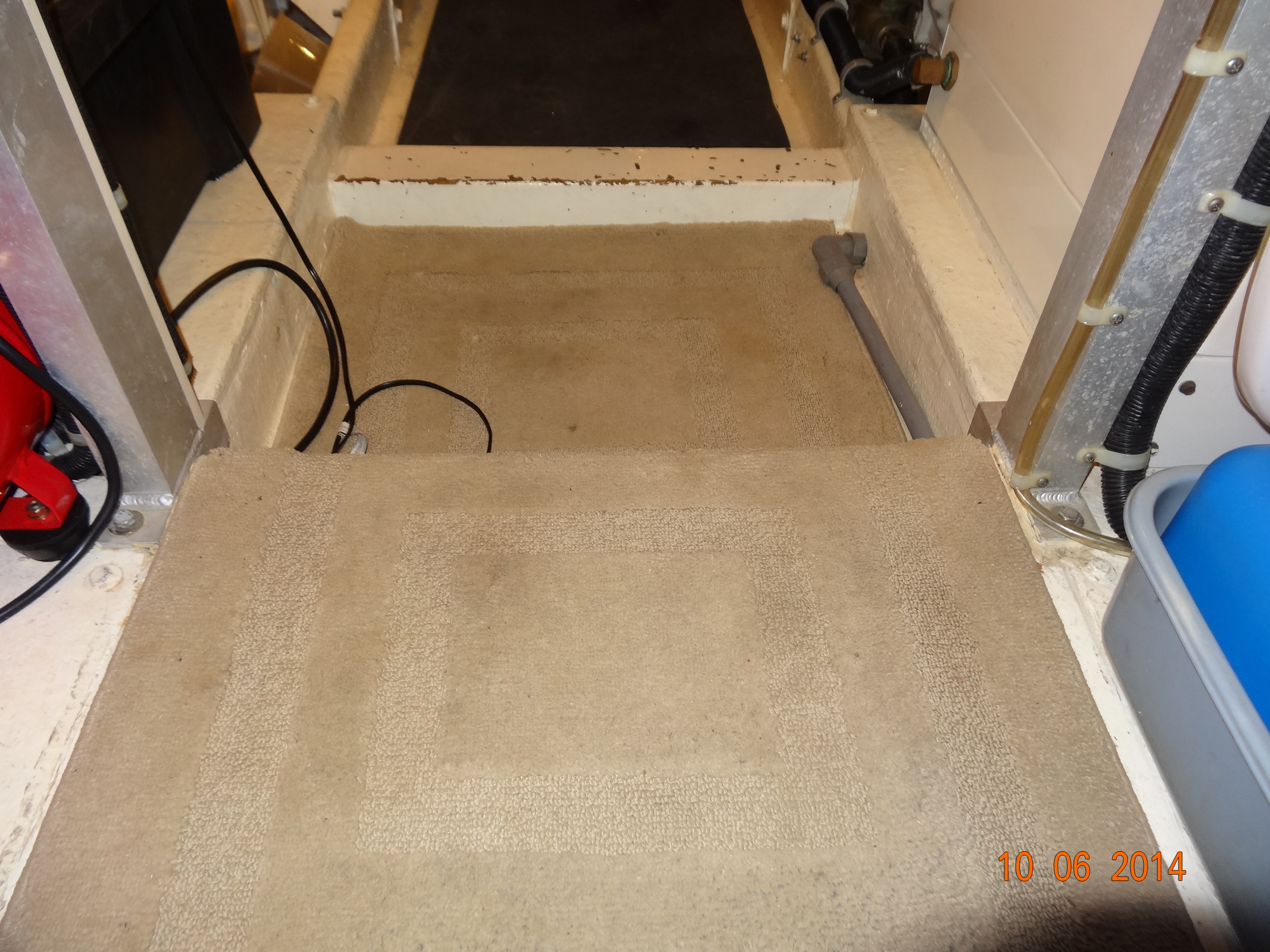 As we enter the “Holy Room” notice the carpet and rubber padding on the engine room floor. This is adds a little extra comfort for those old knees. The rubber padding we bought at Sears. We bought those colorful squares for kids play areas, the underside was black!