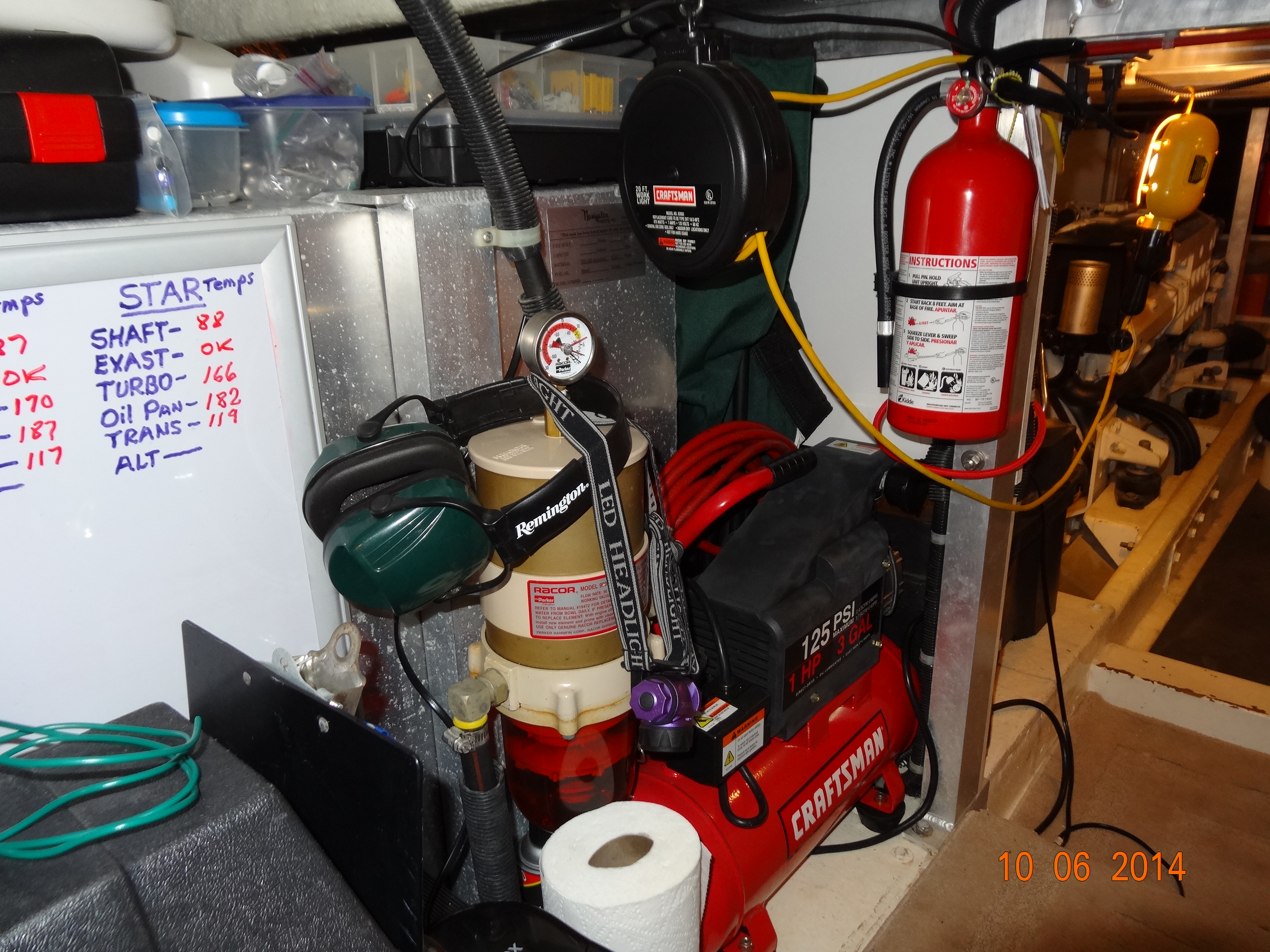 These pictures are from the front of the engine room. Notice the neat and orderly fashion all items are stowed?