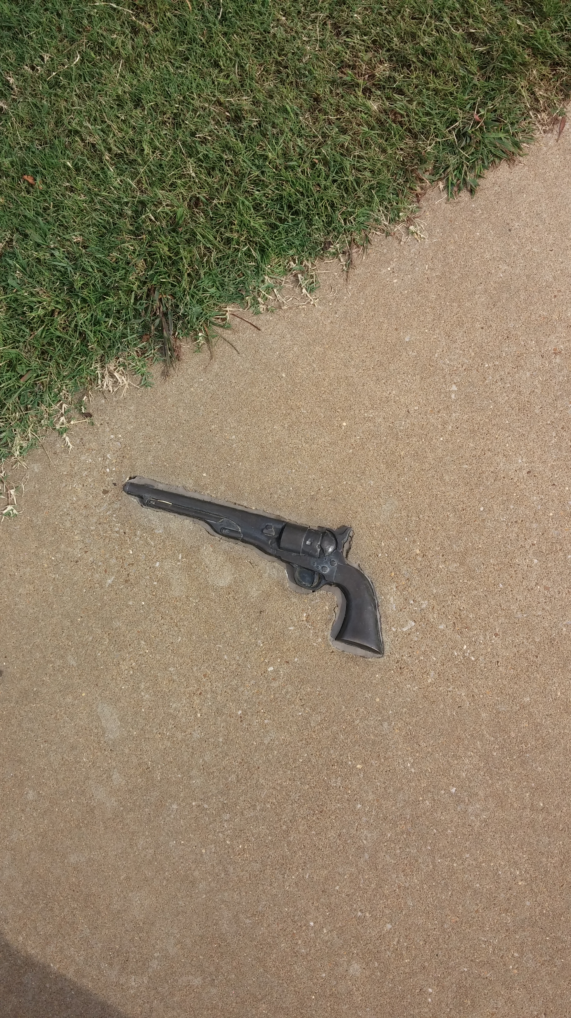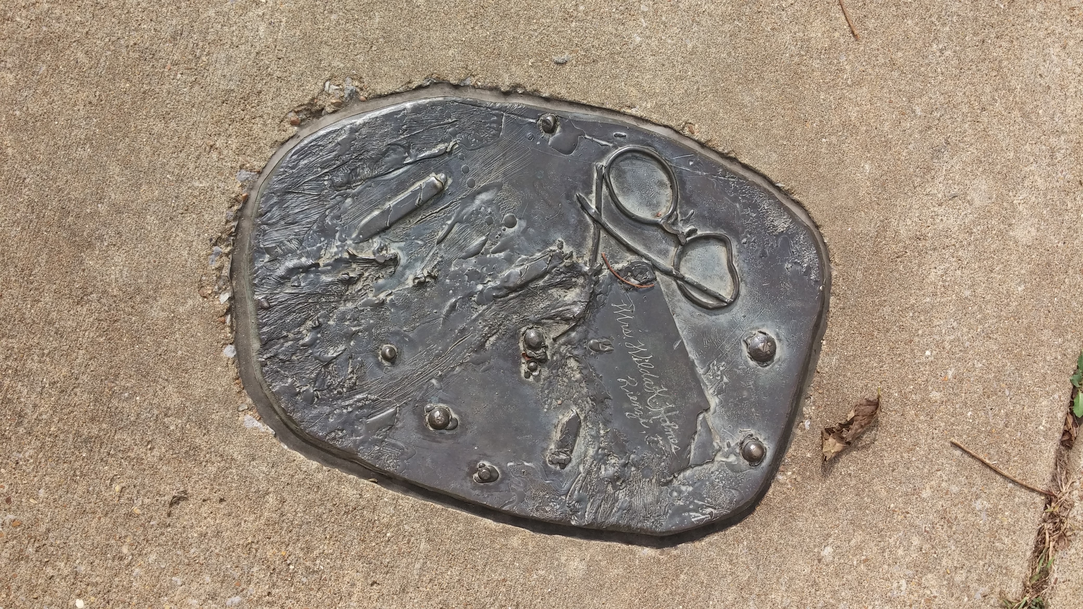 As you walked from your car to the building you noticed little items cast in bronze sticking out of the concrete. Here is a canteen