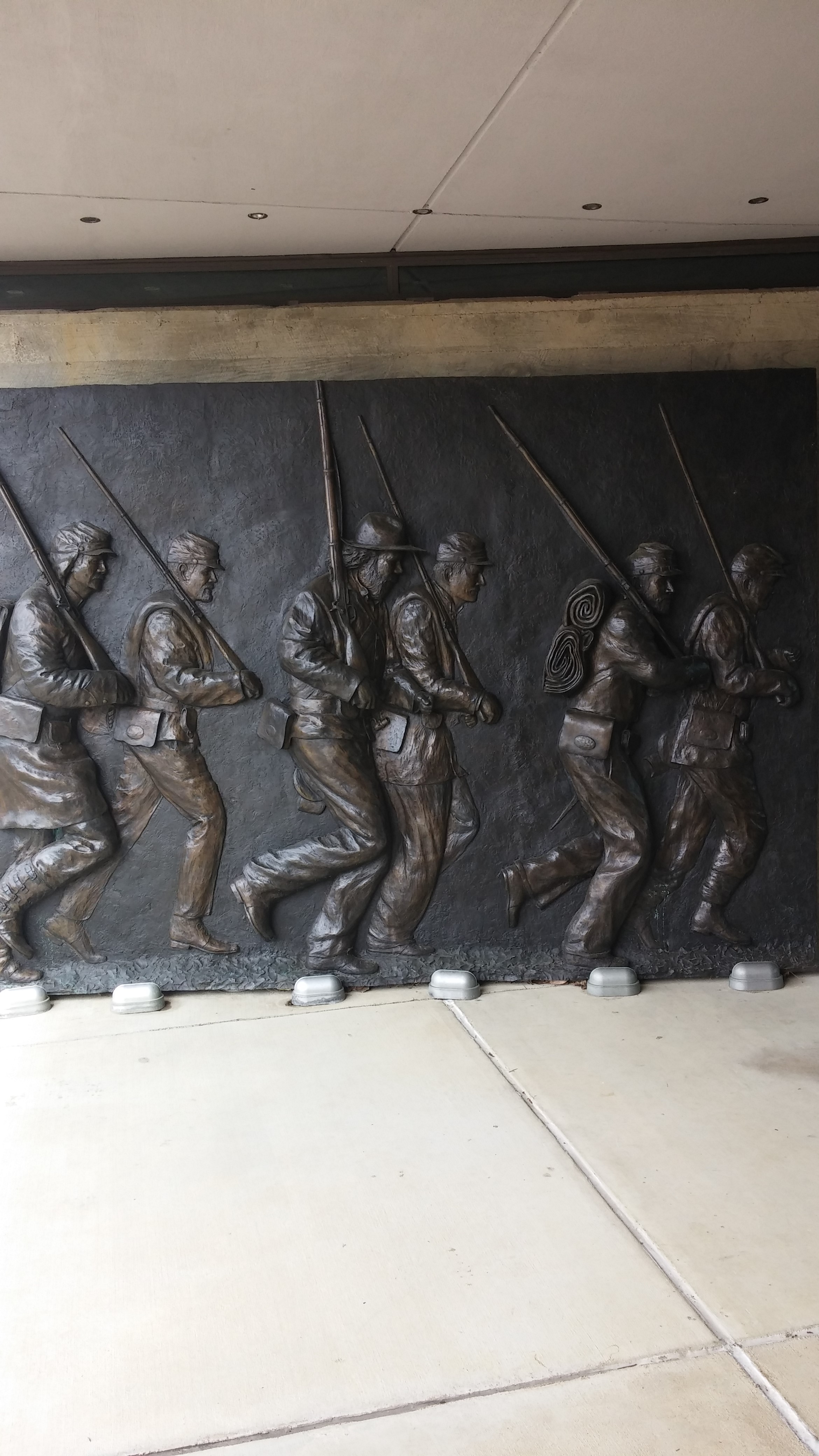 Once we got to the front door of the building there was this bronze wall of marching soldiers