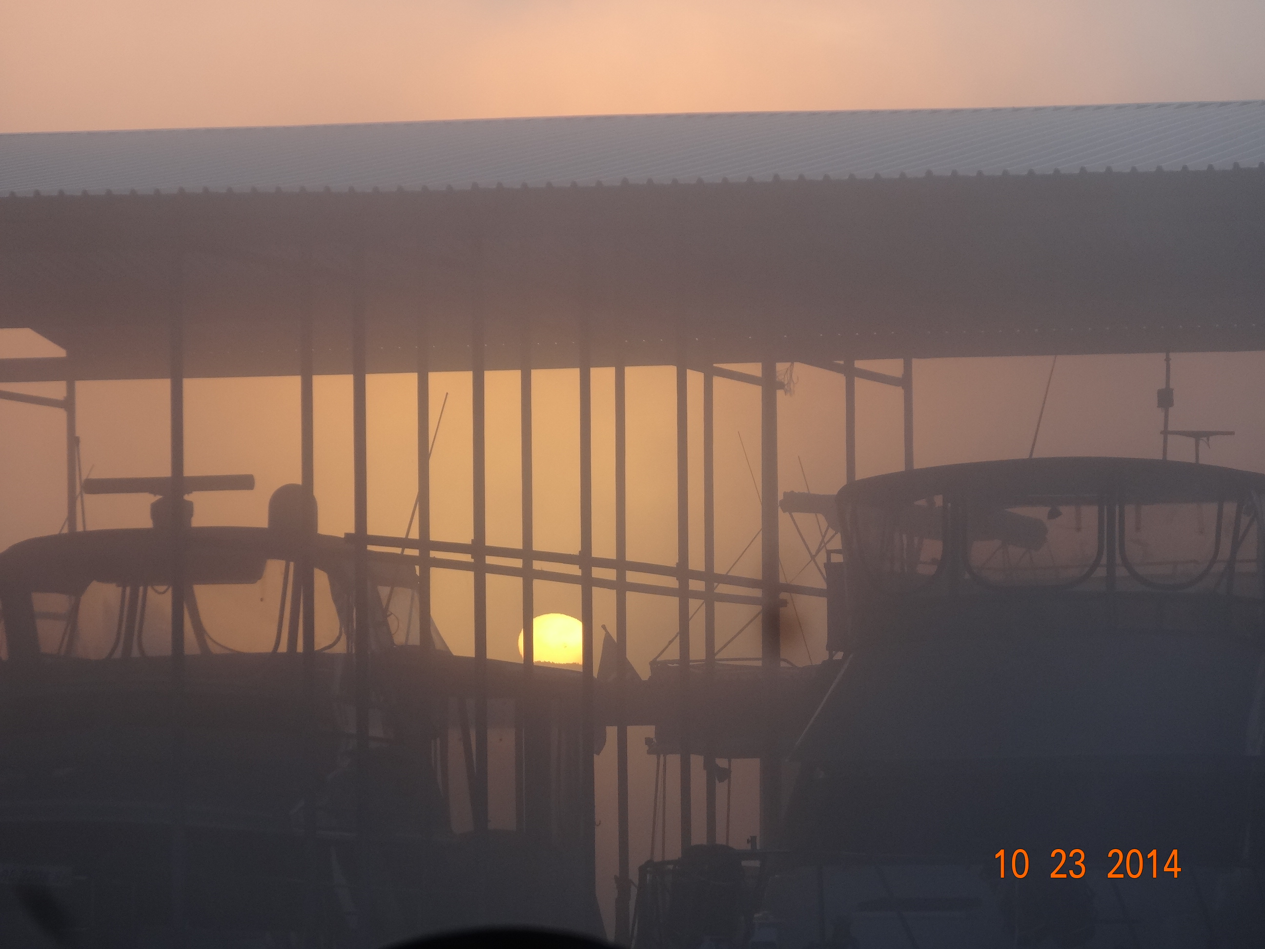 Sunrise 1 and 2 are taken from the pilot door of our boat looking out at the dock in front of us. Sunrise 3 is taken from the parking lot overlooking the bay our marina is on. It has been pretty foggy in the mornings, I guess fall is here to stay.
