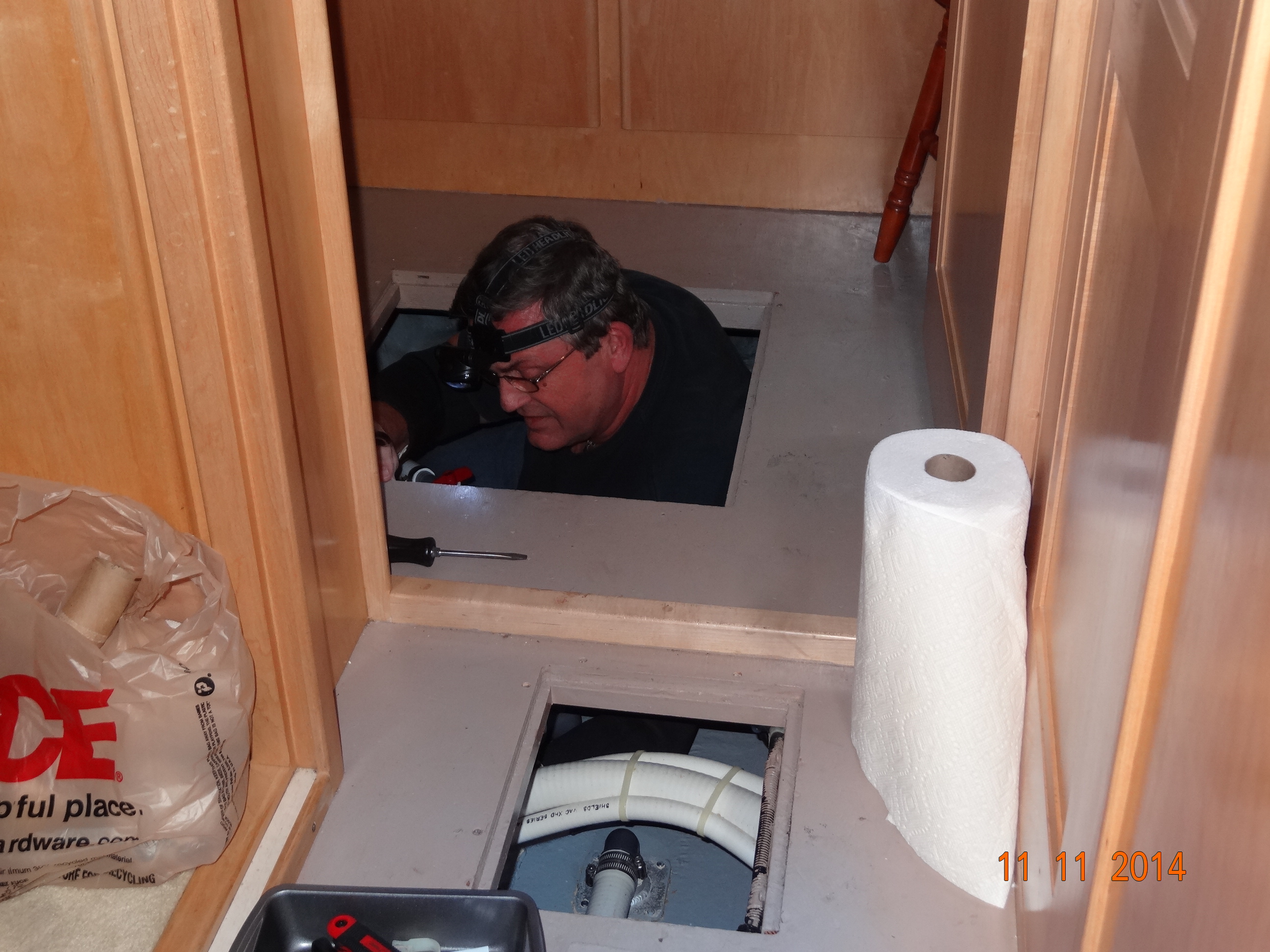 Gary had to go down the front hatch which is closest to the vacufush pumps so see what the problem is.