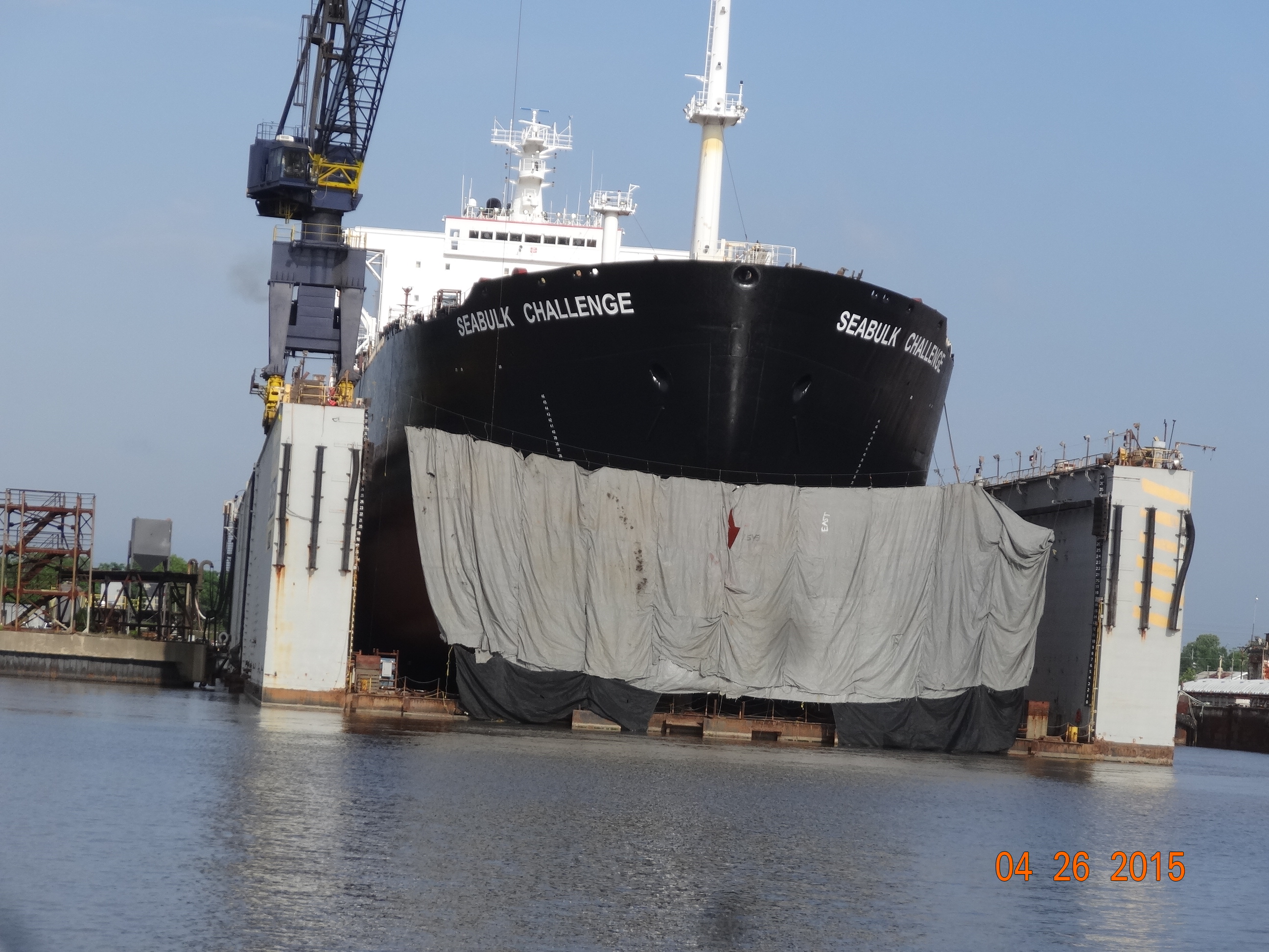 We left Dog River marina early today and found more interesting stuff to look at in Mobile Bay. Luckily there was no fog this time and as it was Sunday morning, so there wasn’t that much traffic either. We did see this boat in a floating barge being repaired