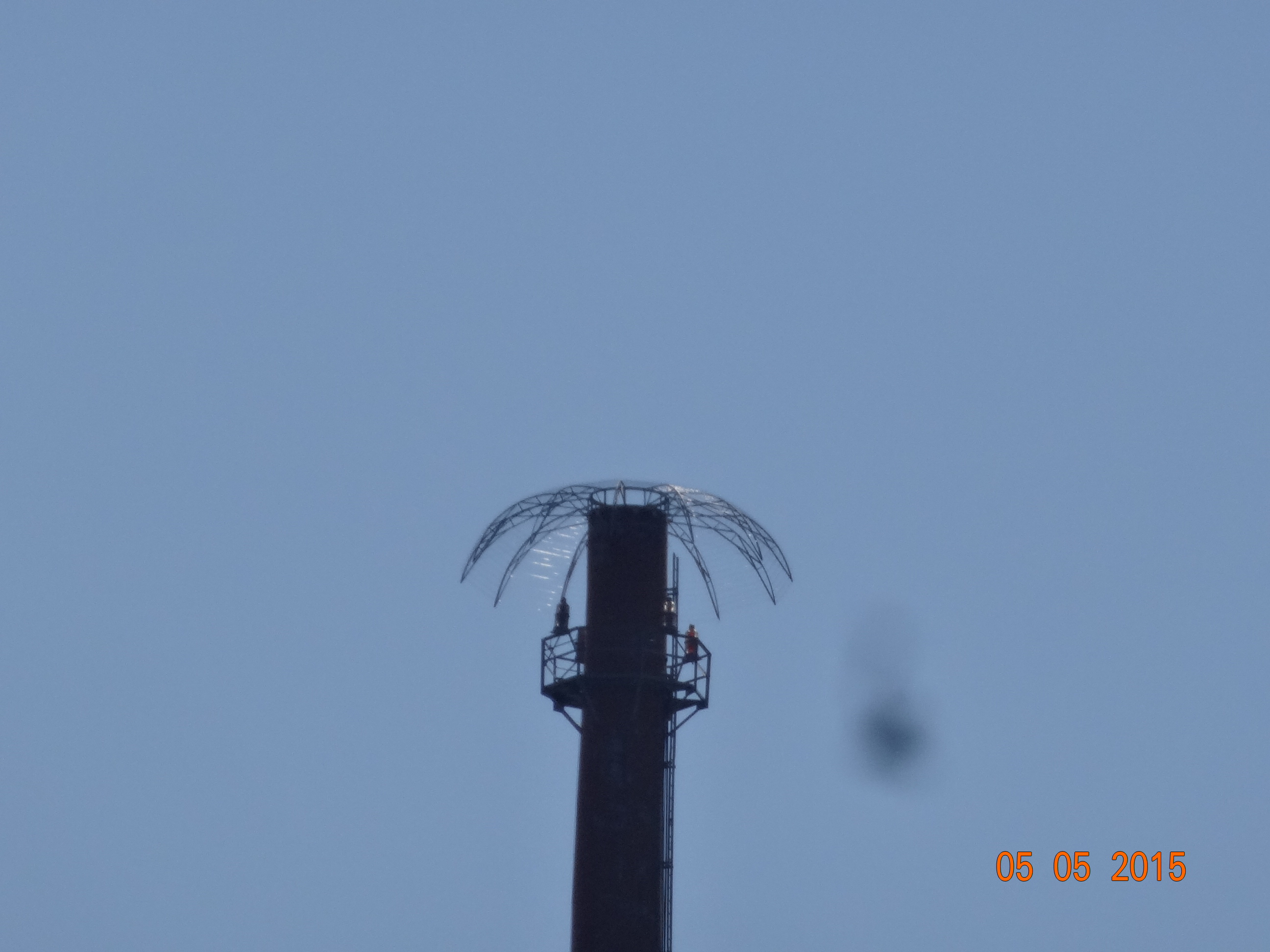 With a weird thing on their chimney. Do you think this is to keep the birds from sitting on top? Hee hee.