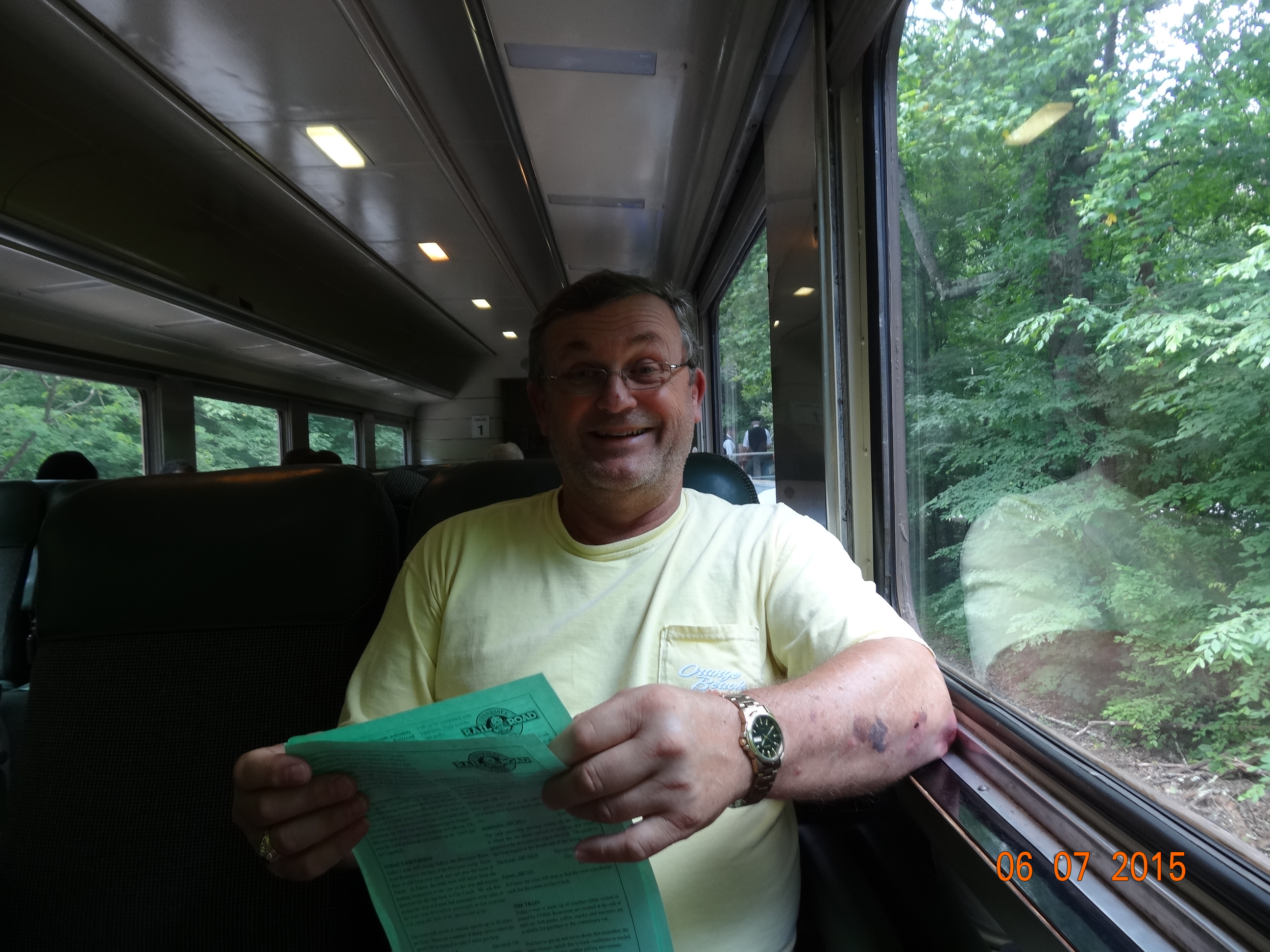 He was a jack of all trades and a very good banjo player! At one point along the ride the train stopped. Turned out there was a tree that fell across the tracks. That trusty Conductor got out there with his new chain saw and cut the puppy up. He is a good person to have around :).
