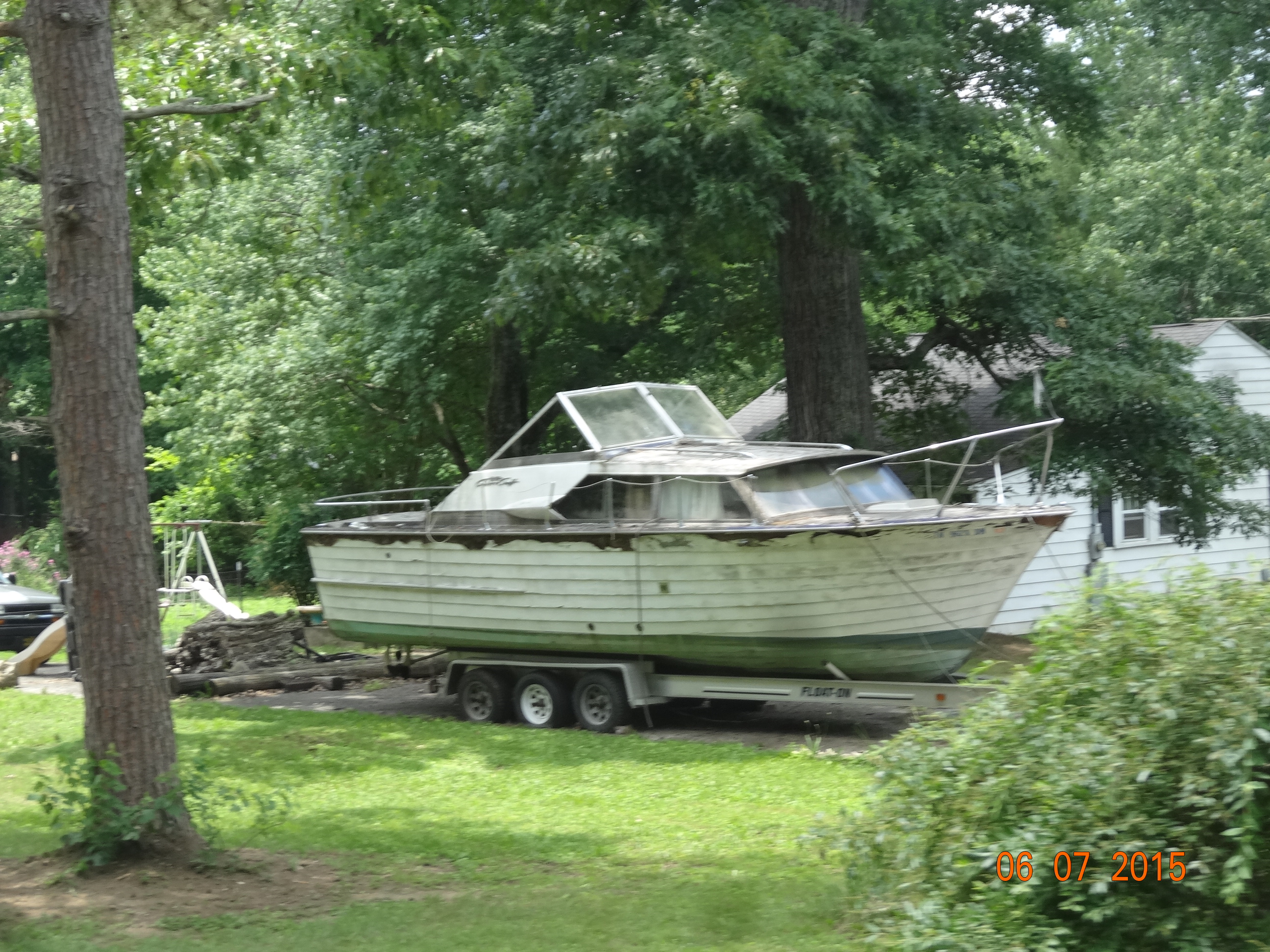 it sailed by us on the other track and then hooked up to the front of the train. After a little bang, we were off! Look! Even while on a train we were able to spot a boat, another Chris Craft
