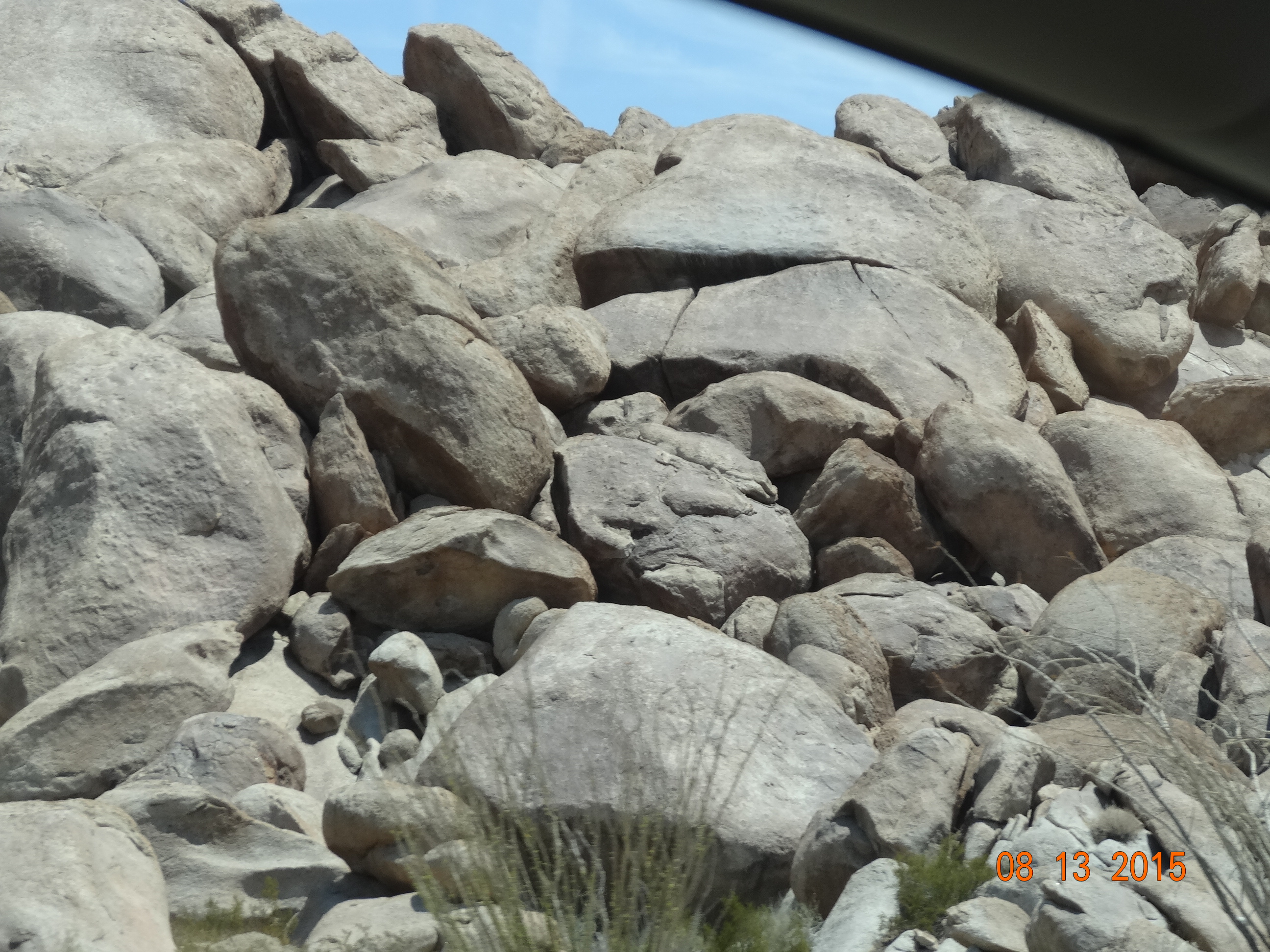 And I mean HUGE rocks, some as big a bus.  See the telephone pole in the picture?  That gives you some idea of the size of these rocks.  Really cool!  We made sure we didn’t scream or throw things out the window as we passed the rocks so we didn’t cause a rock slide.