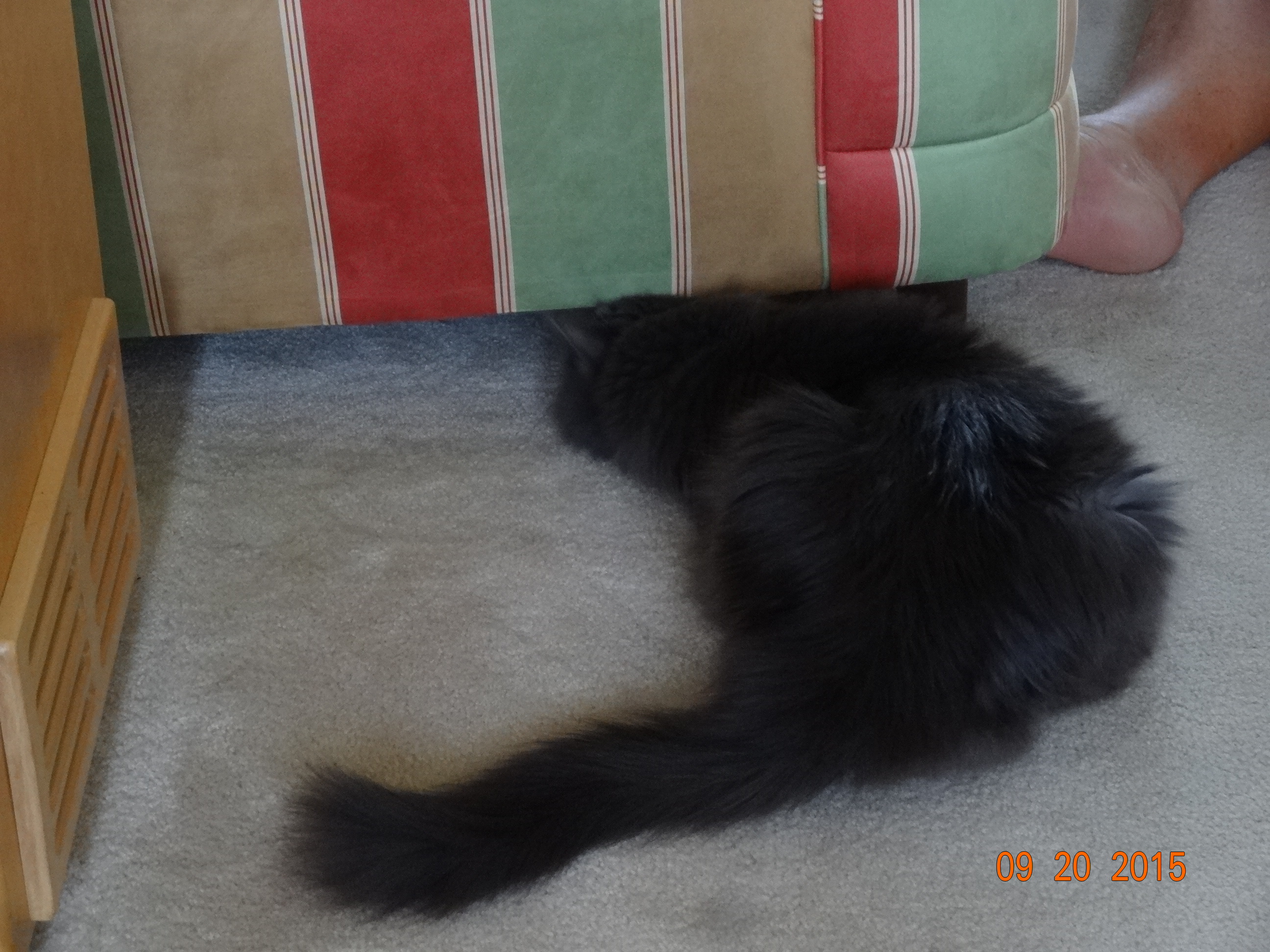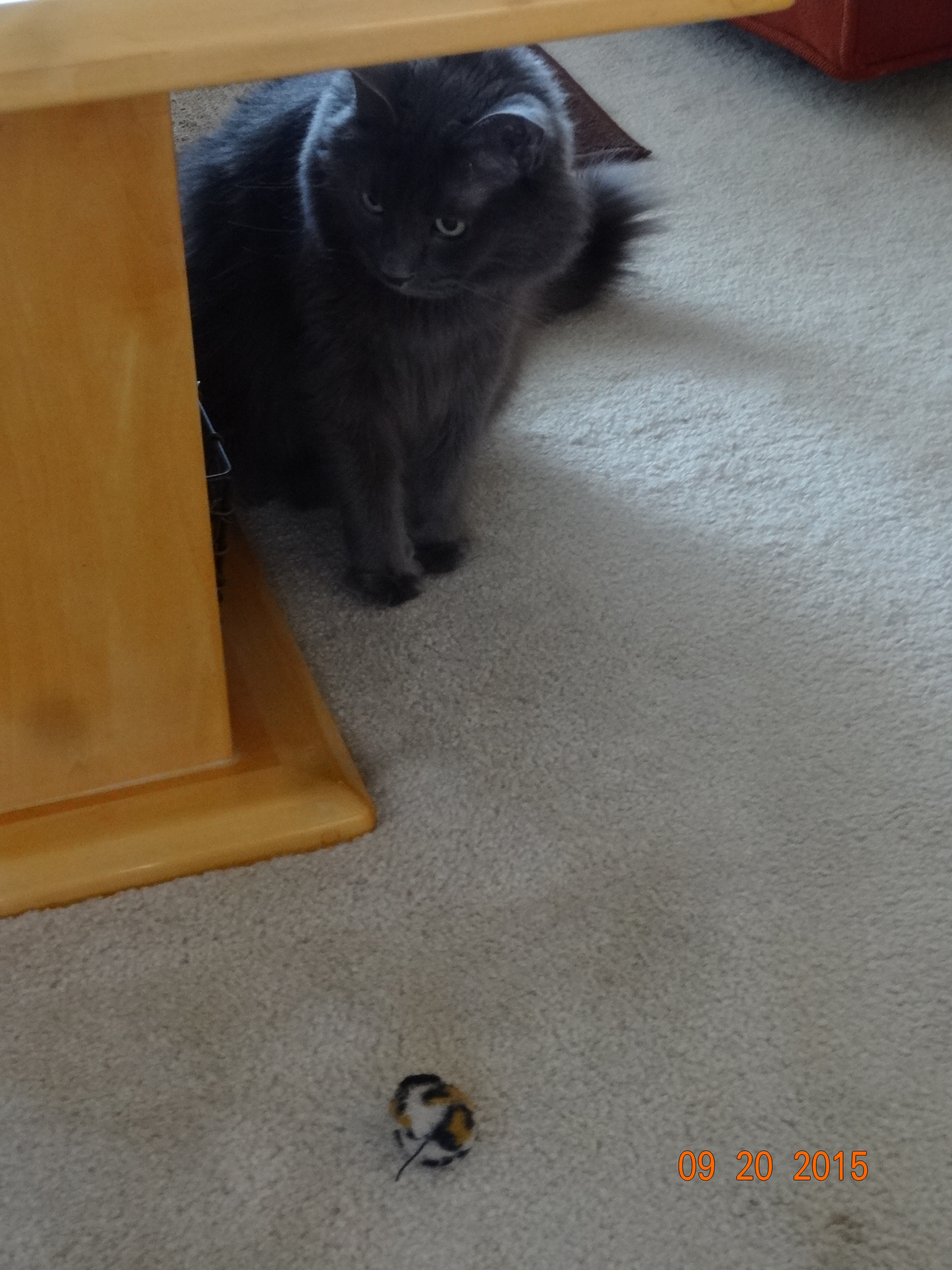 Of course Smokie had to supervise and make sure there weren’t any of his toys still under there