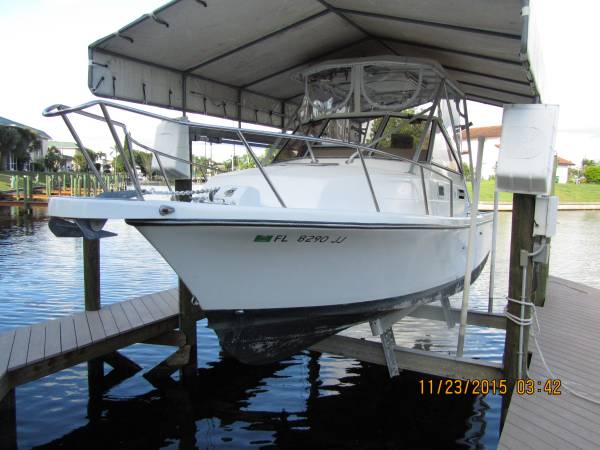 So, the Shamrock boat is in our top 5 list. It only has a beam (that’s width for you landlubbers 😉 ) of 8 feet, so it would fit on our lift nicely.  Our broker that we are working with told us we wouldn’t want one cause they are a “wet” boat, what ever that means.  But we decided to look at one that was 6 blocks from our house just to get a feel for what the boat was like.  Here is the boat