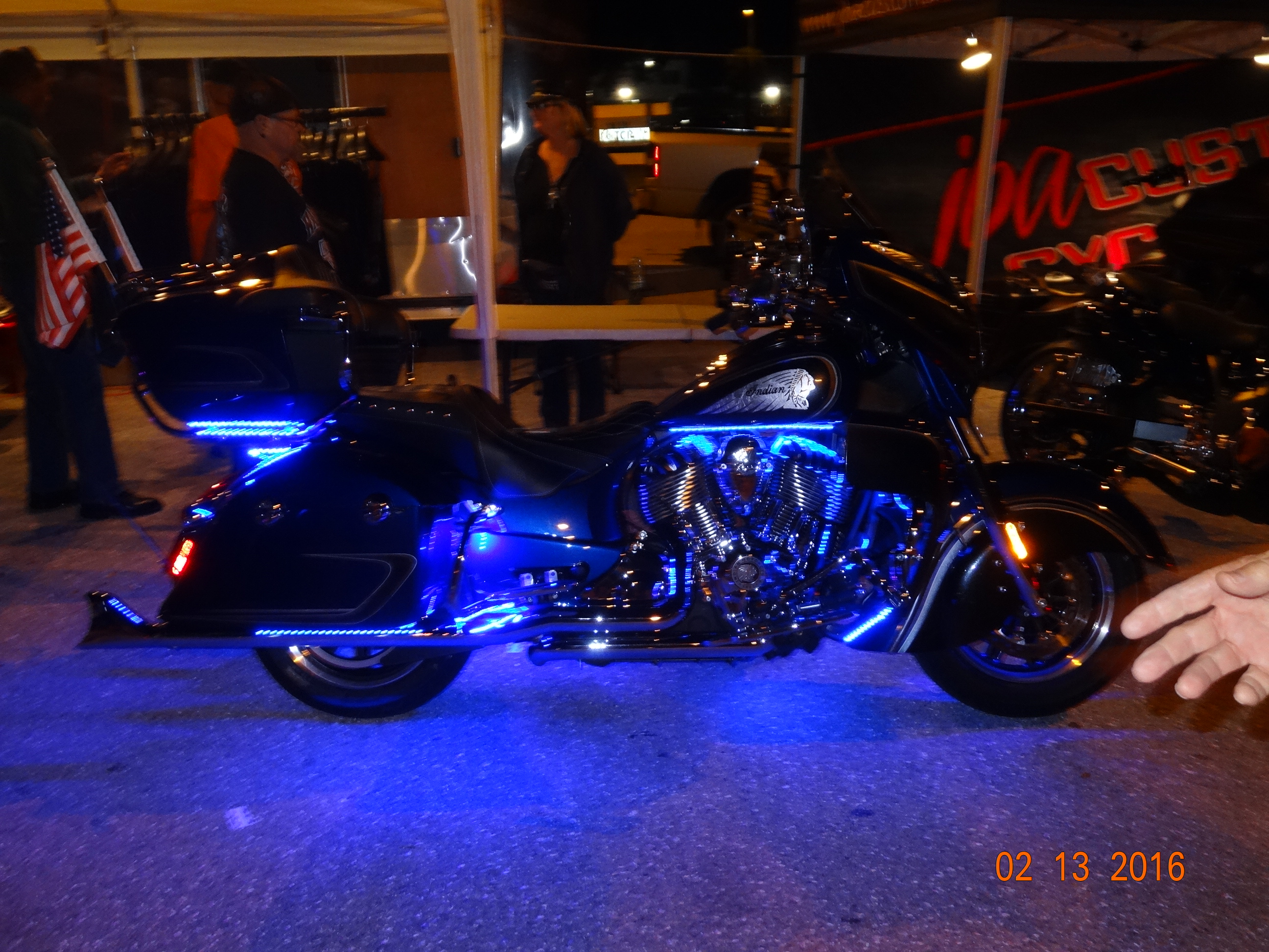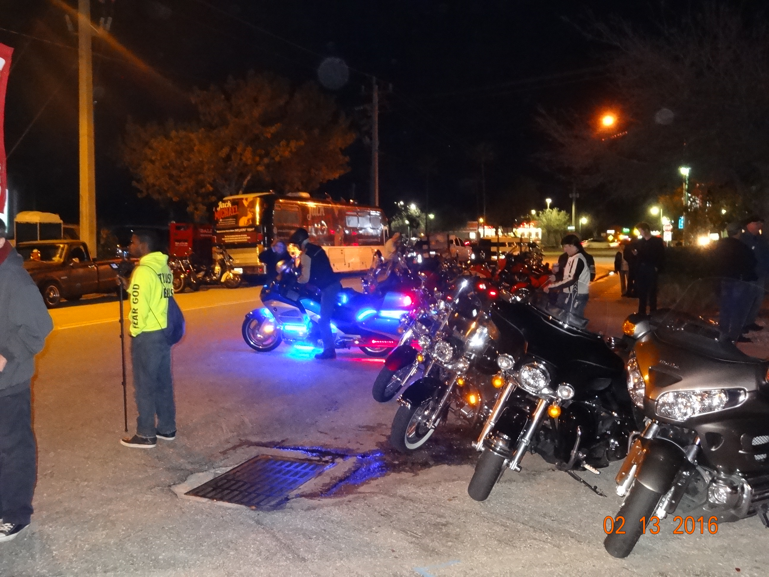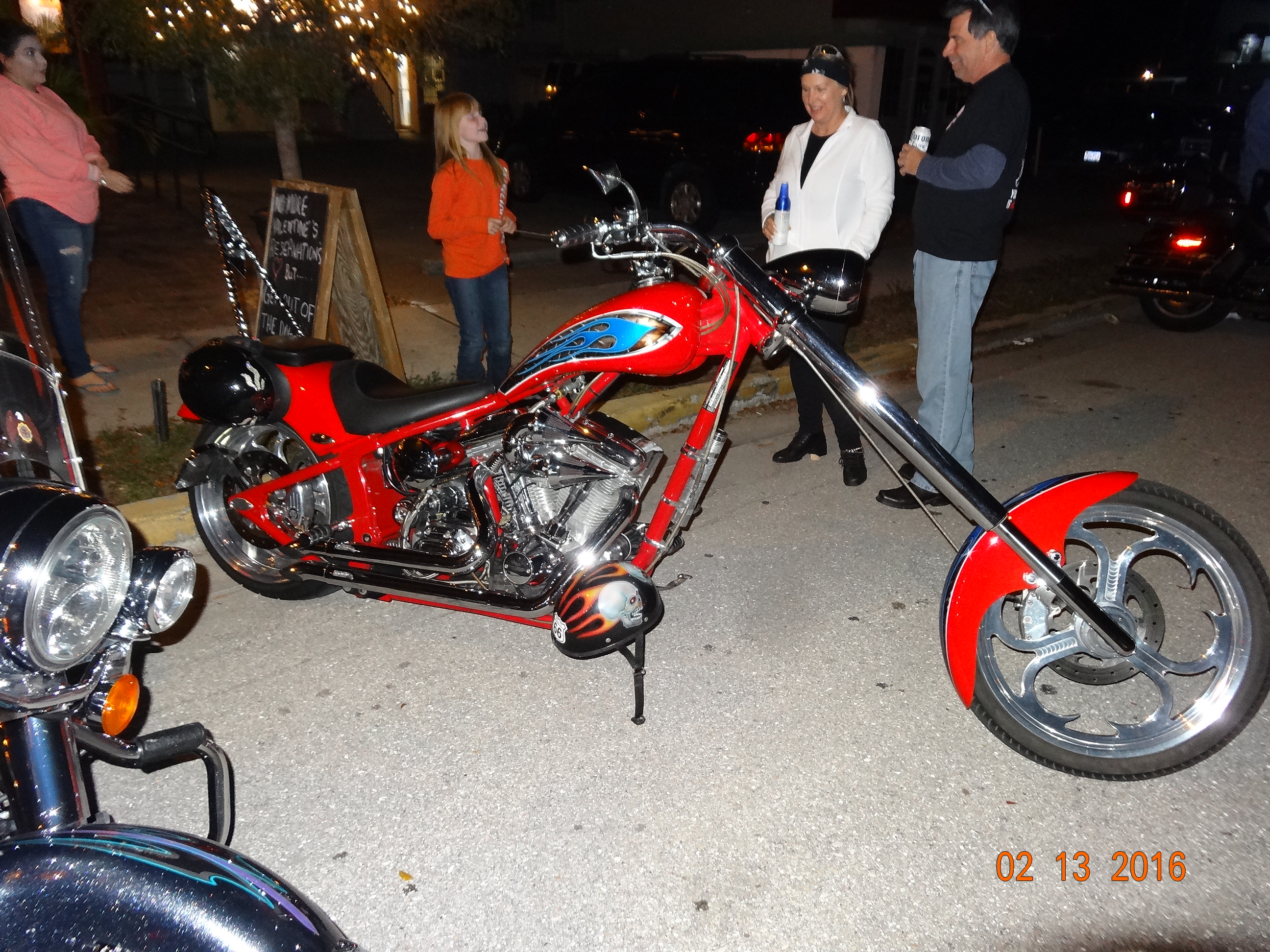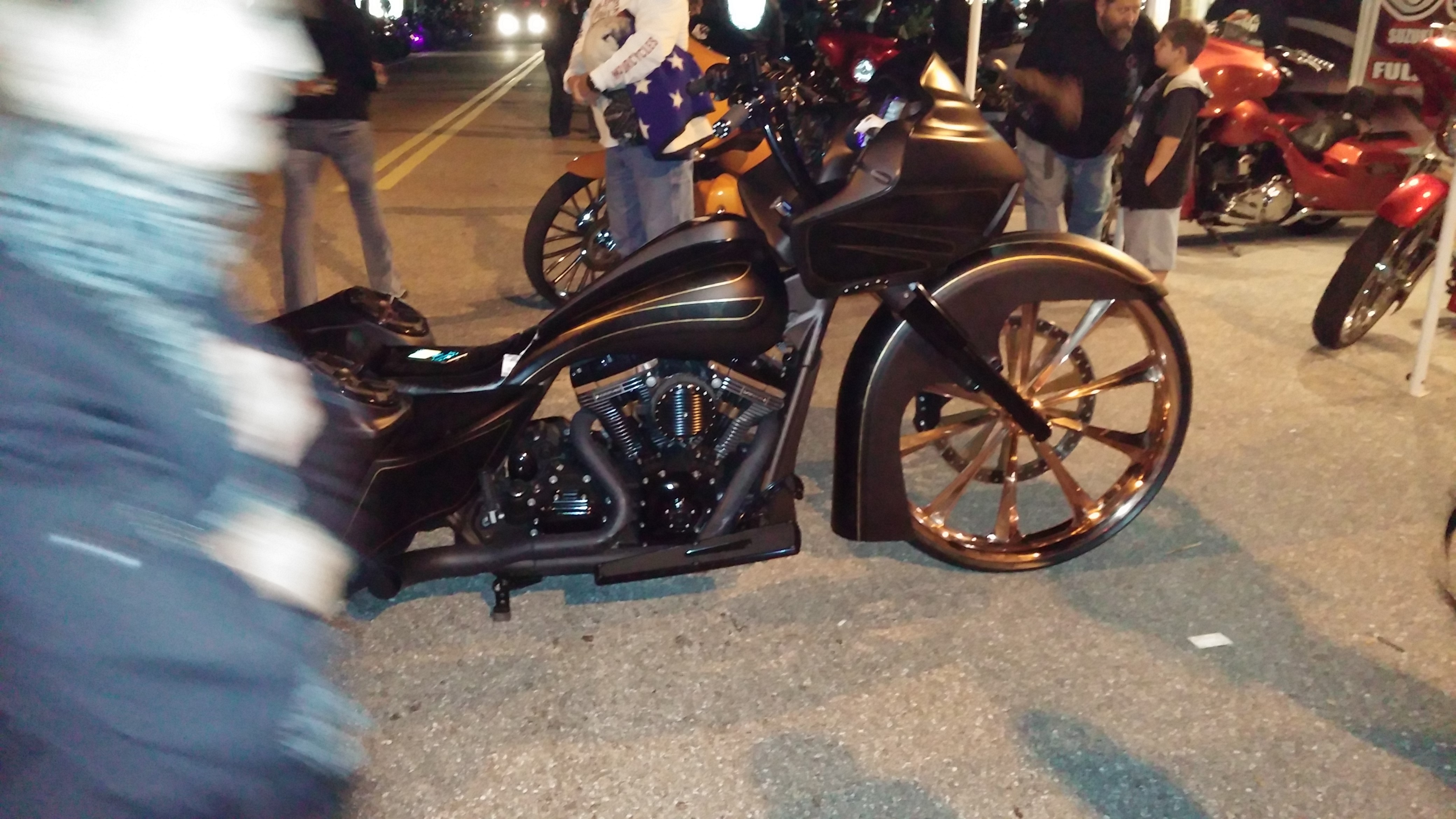 They have a thing here called Bike Night.  The place where the bikes, or should I clarify, motor cycles, are, is within walking distance from the condo and it is exactly what it sounds like.  All the bikers come out and park their bikes along the curb for 10 blocks or so and people walk up and down the street and look at the bikes and visit the vendors.  I’ve never seen so many bike gang members in one place before.  And no one rumbled!  I think it was like a miniature Sturgis, although I’ve never been there either.  Really cool seeing all the bikes.