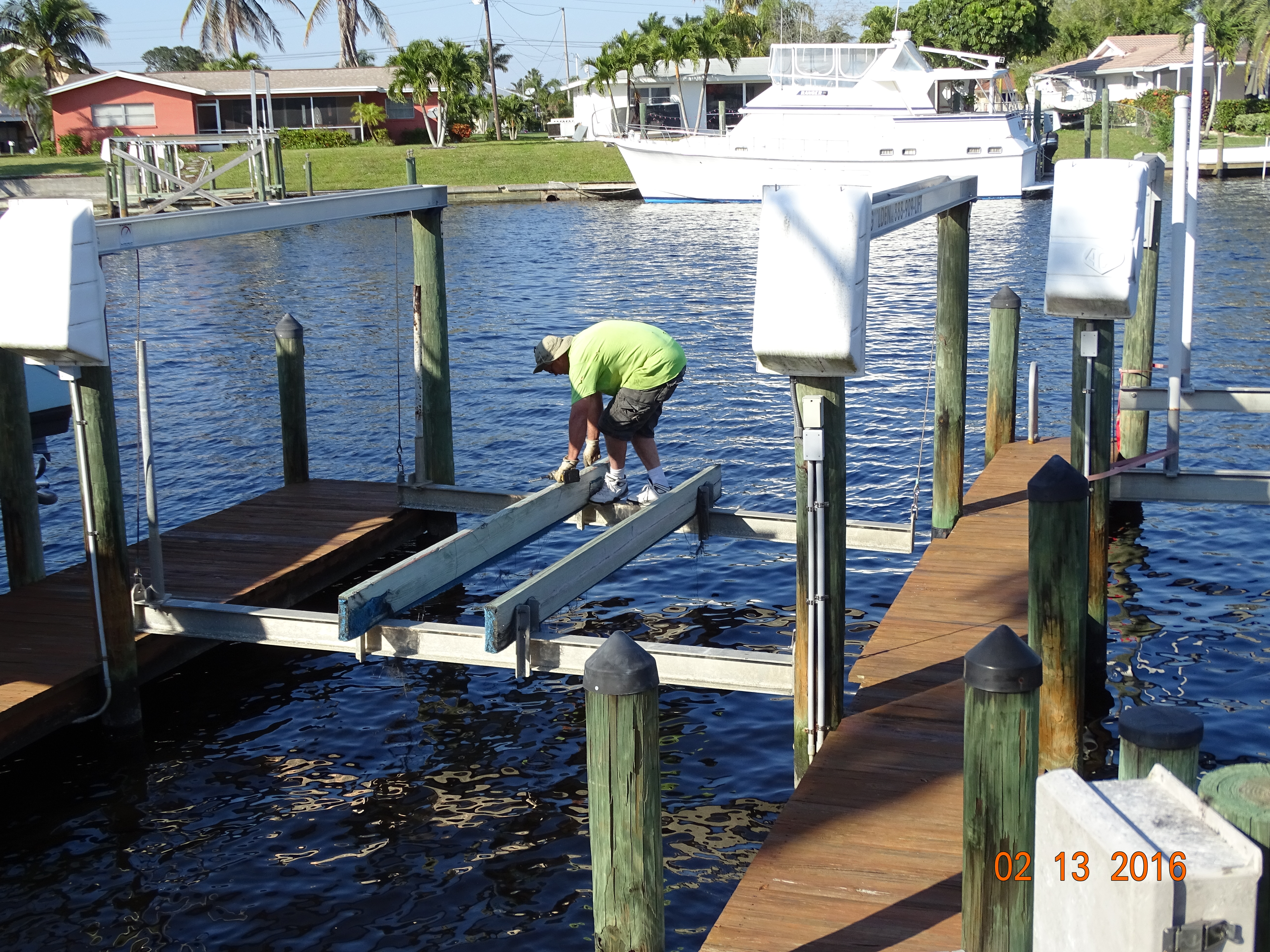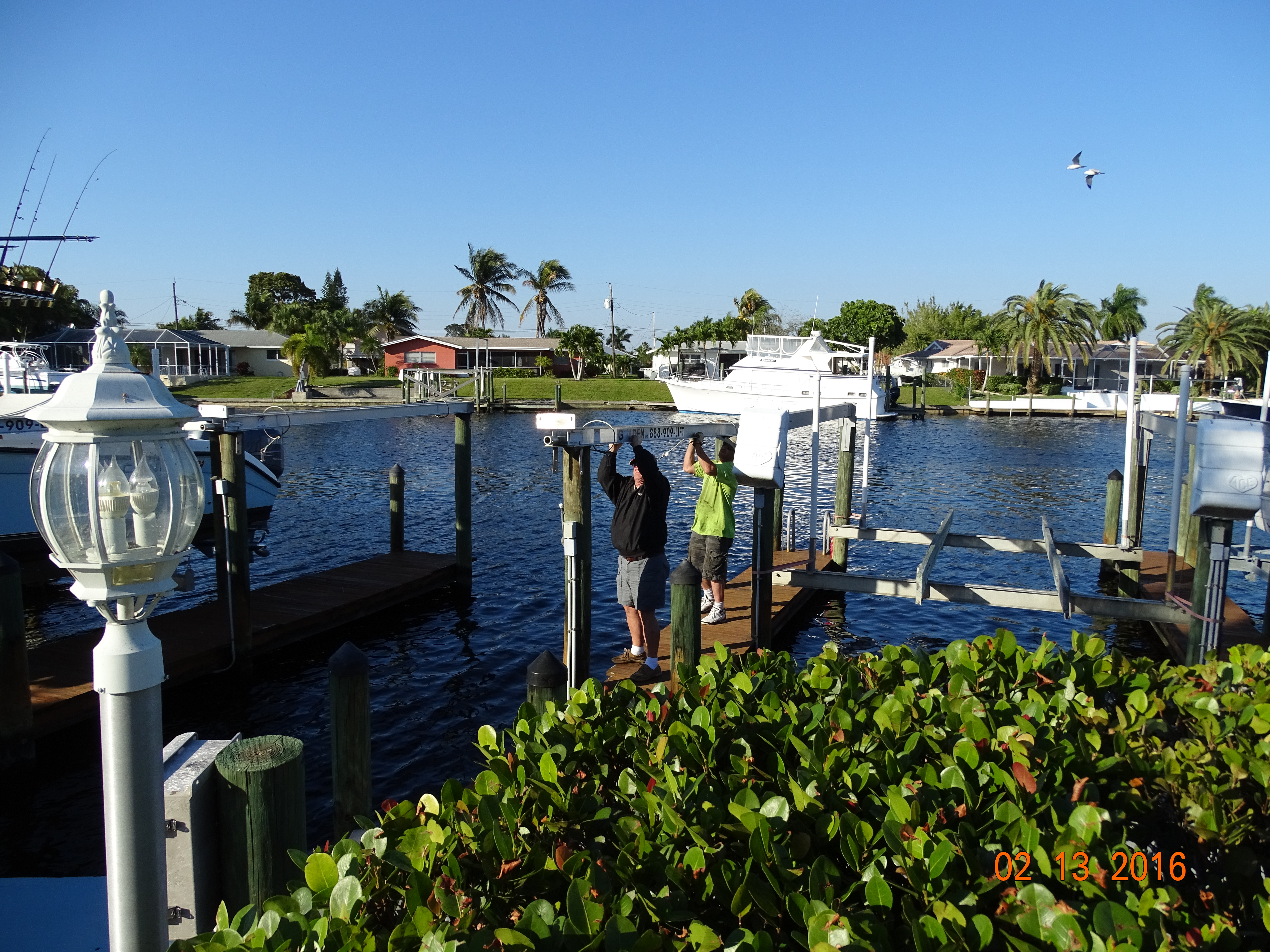 So we decided to take down our lift because no matter what boat we get, the boat will be too big and heavy for our 7500 lb. lift.  We figured we put the $6,000 to $9,000 it would cost to upgrade the lift into a better boat and just leave the boat in the water.  Our canal has brackish water and little to no current so there won’t be as much growth on it as if it were in a more salty or heavy current canal.  Unlike Minnesota where your boat bottom gets all slimy, here you actually get little critter crustations growing on your hull.  So like when we had the boat in Orange Beach, we’ll have to have a diver come and scrape the bottom of the boat a few times a year to keep the bottom smooth.  A smooth bottom makes for a faster and more fuel efficient boat
