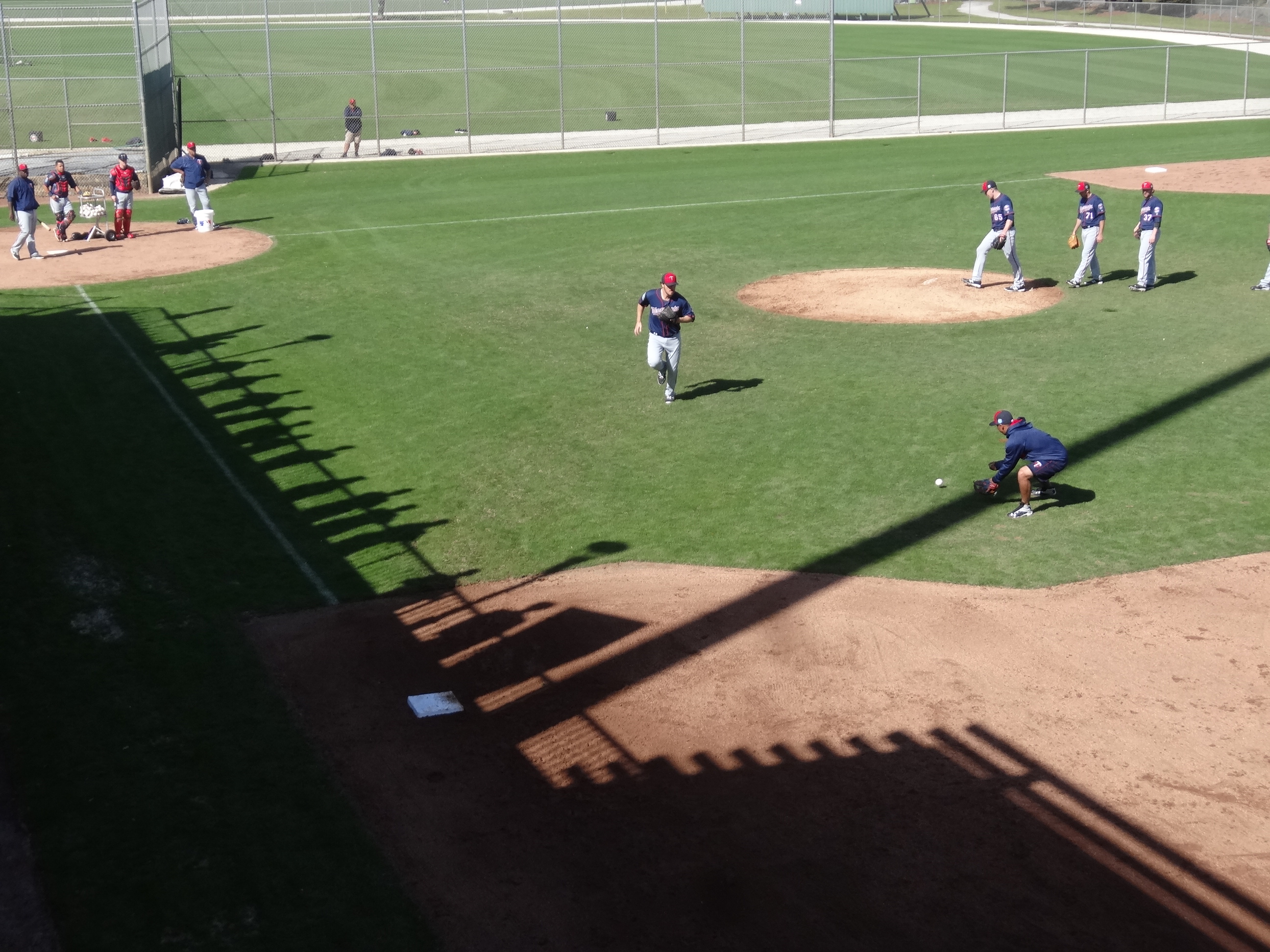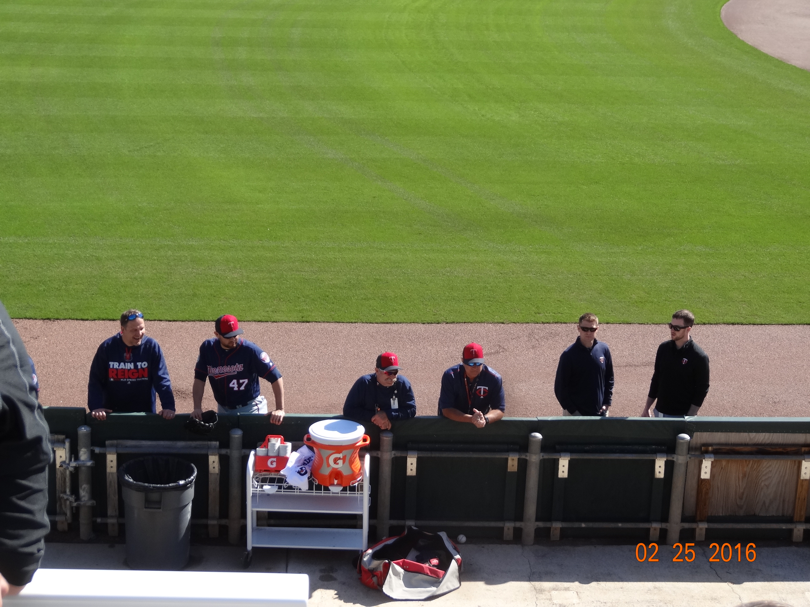 Now Gary and I aren’t big sports fans of anything. Gary does enjoy the occasional woman’s mud wrestling ;). We have seen a few Twin’s games in our time so we were somewhat familiar with the concept of Baseball. I didn’t realize how many players they actually had. Holy Hoot, no wonder it costs so much for tickets. There were a lot of guys here practicing.
