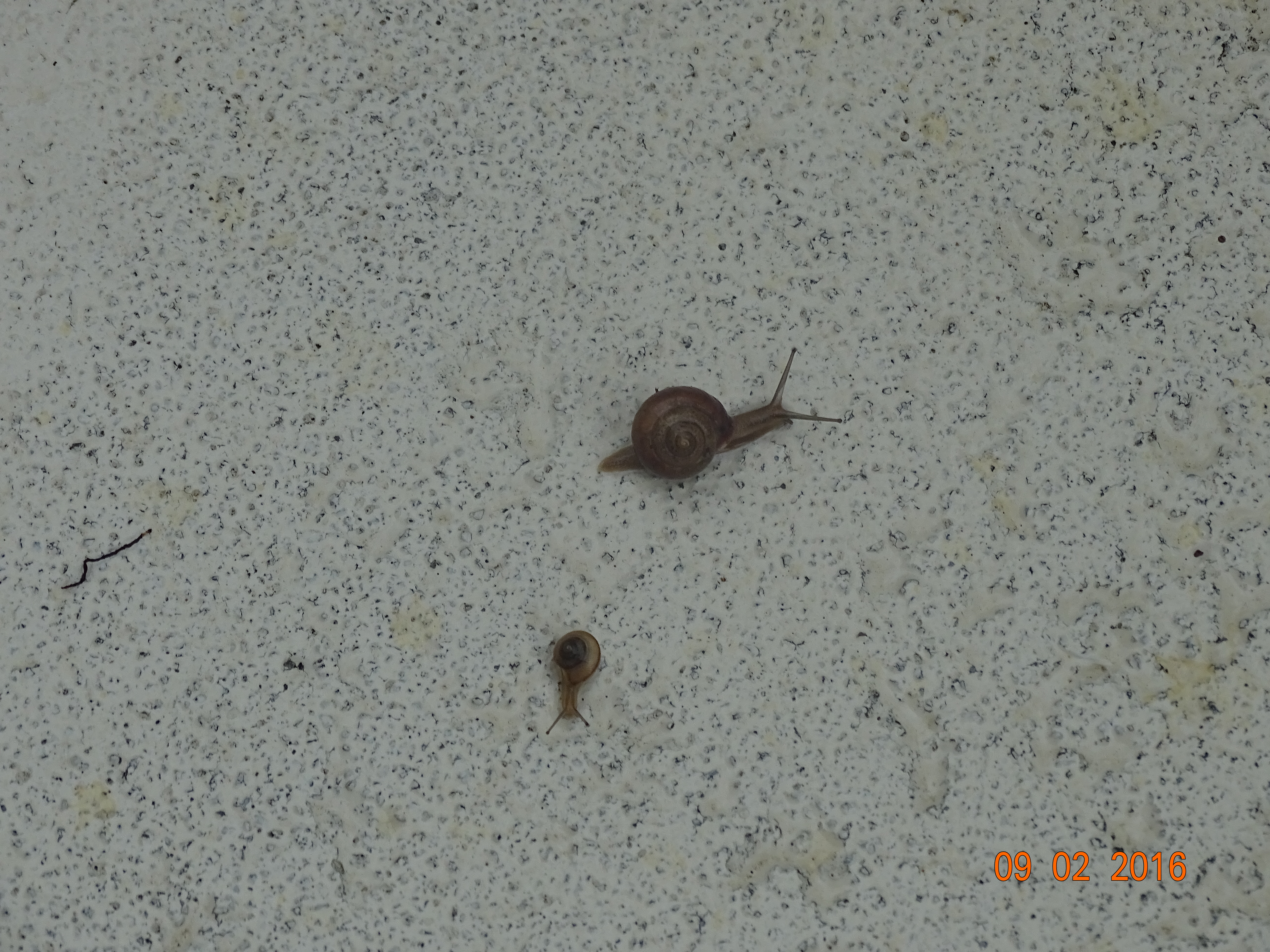 They seem to come out when it is very hot and humid. One day they will be all over the place and the next day they’ll be gone. And see those little baby snails? If you’re not watchin where your steppin they go crunch! Euuuw! I hope the snail season is over soon.