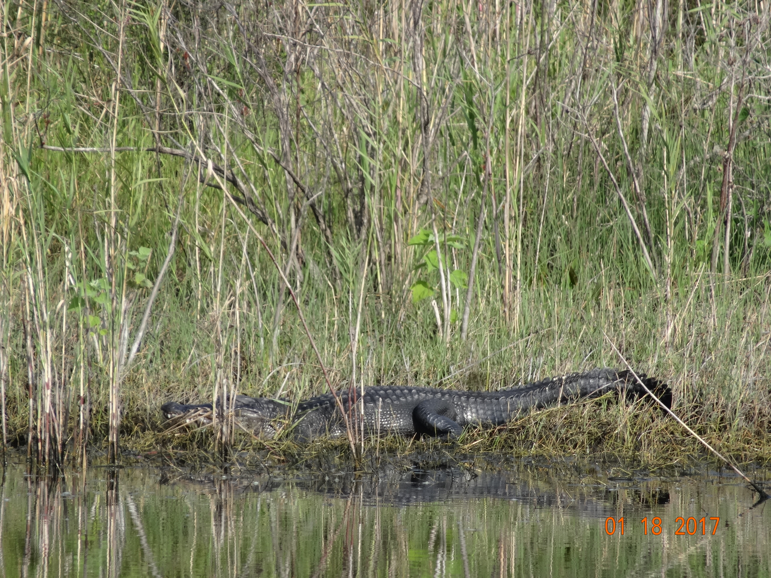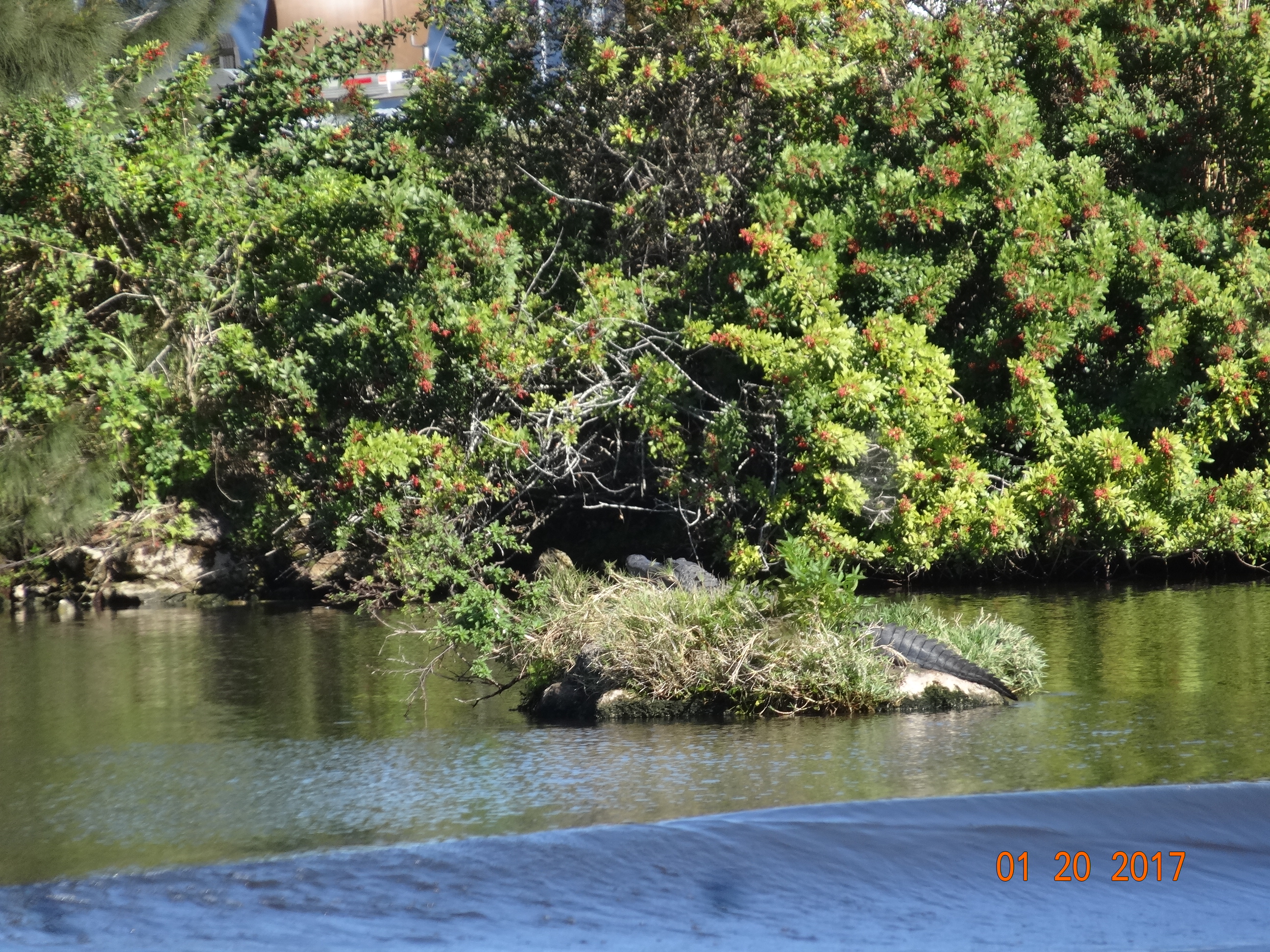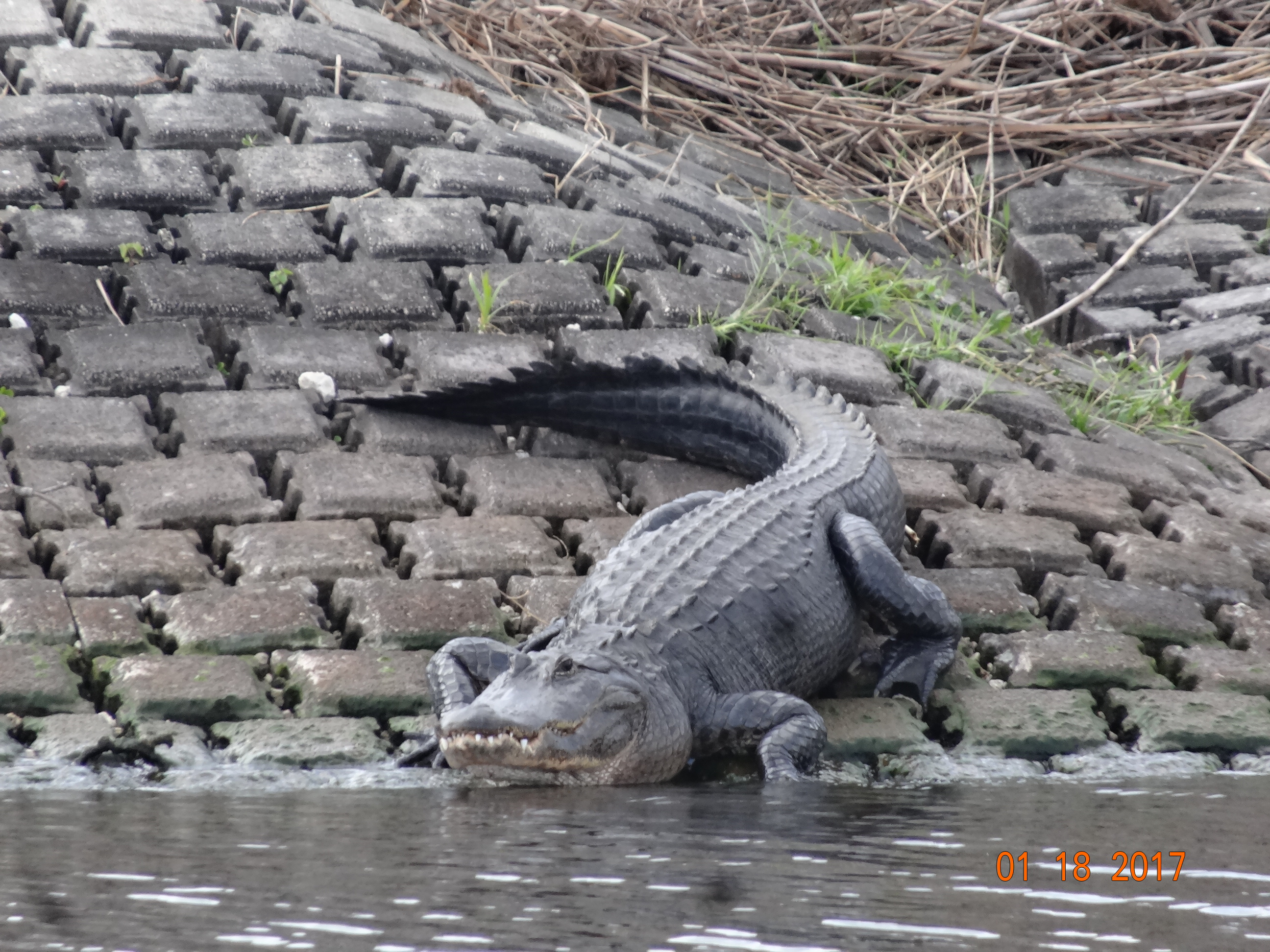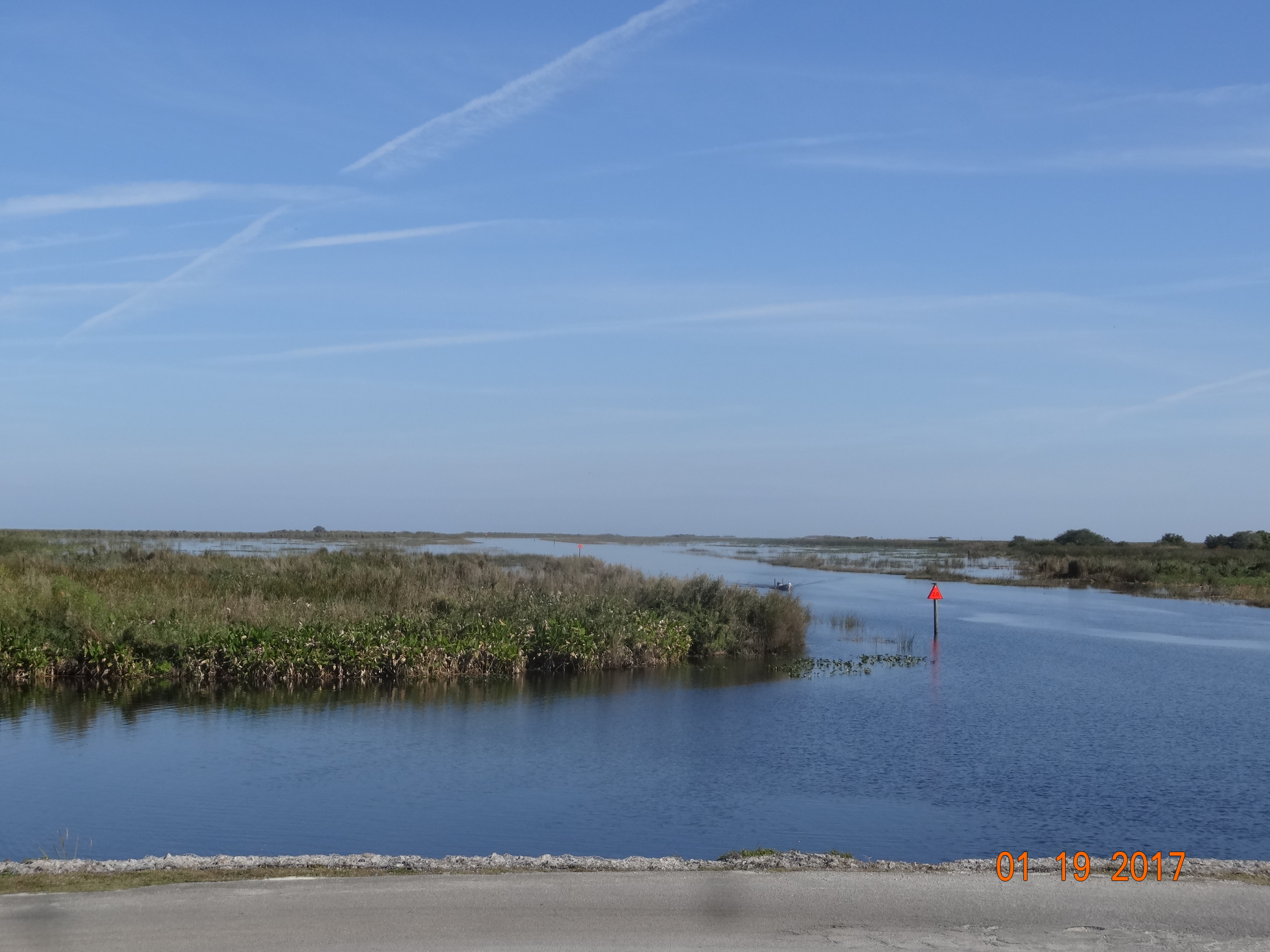 We continued our trip to Clewiston the next morning. We only had about 16 miles and 2 locks to go this morning so we knew we’d have plenty of time. The first lock was about a mile up the river. They again raised us about 6 feet but after yesterday, we were ready :). After we got thru that lock we traveled at our 8 MPH and were able to see the scenery. Look at the cool things we saw. We saw our first alligator