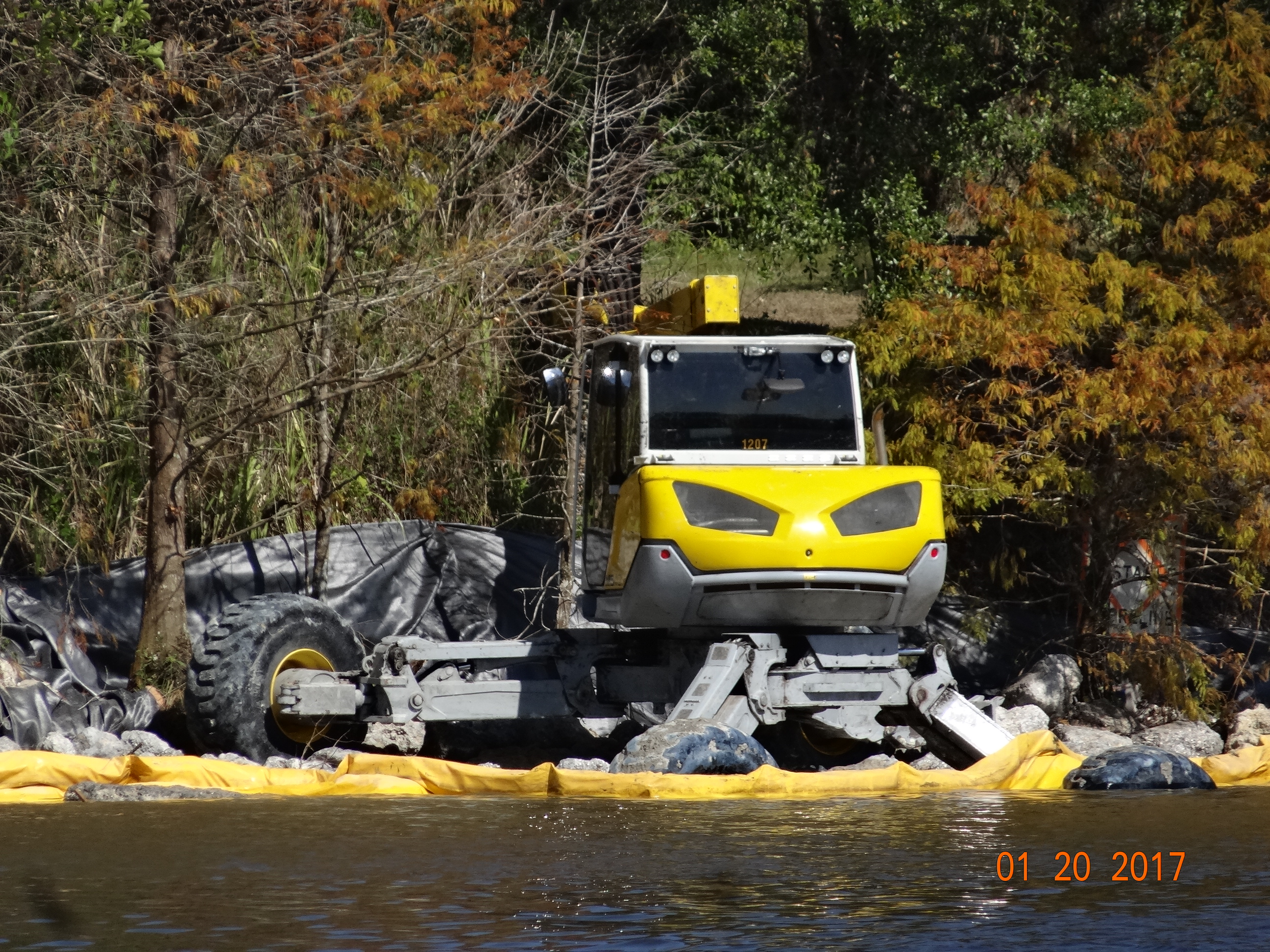 They looked like they were putting in rip rap on the shore line. I’ve never seen anything like them before. Pretty cool vehicles though.