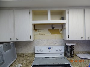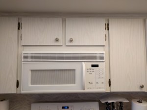 The cupboard is now 5 inches shorter and all ready to put the microwave back up….after the doors are shortened.
