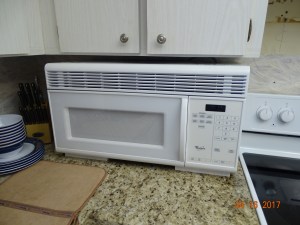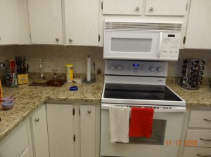 the stove needs some work. The other people just took out the range hood and put a microwave in there. It must have been a while ago…..no turn table….only 750 watt, but it still works. At least we don’t have buttons and dials like the people above us ;). And yes, the cupboard above the microwave is a dandy place to store liquor, which makes this a favorite cupboard :). But there is not much space between the stove cook top and the bottom of the microwave. Ya know, I’m short, and I still have to bend over to read the dials and readouts for the oven. Soooooooo, along comes handy Gary!