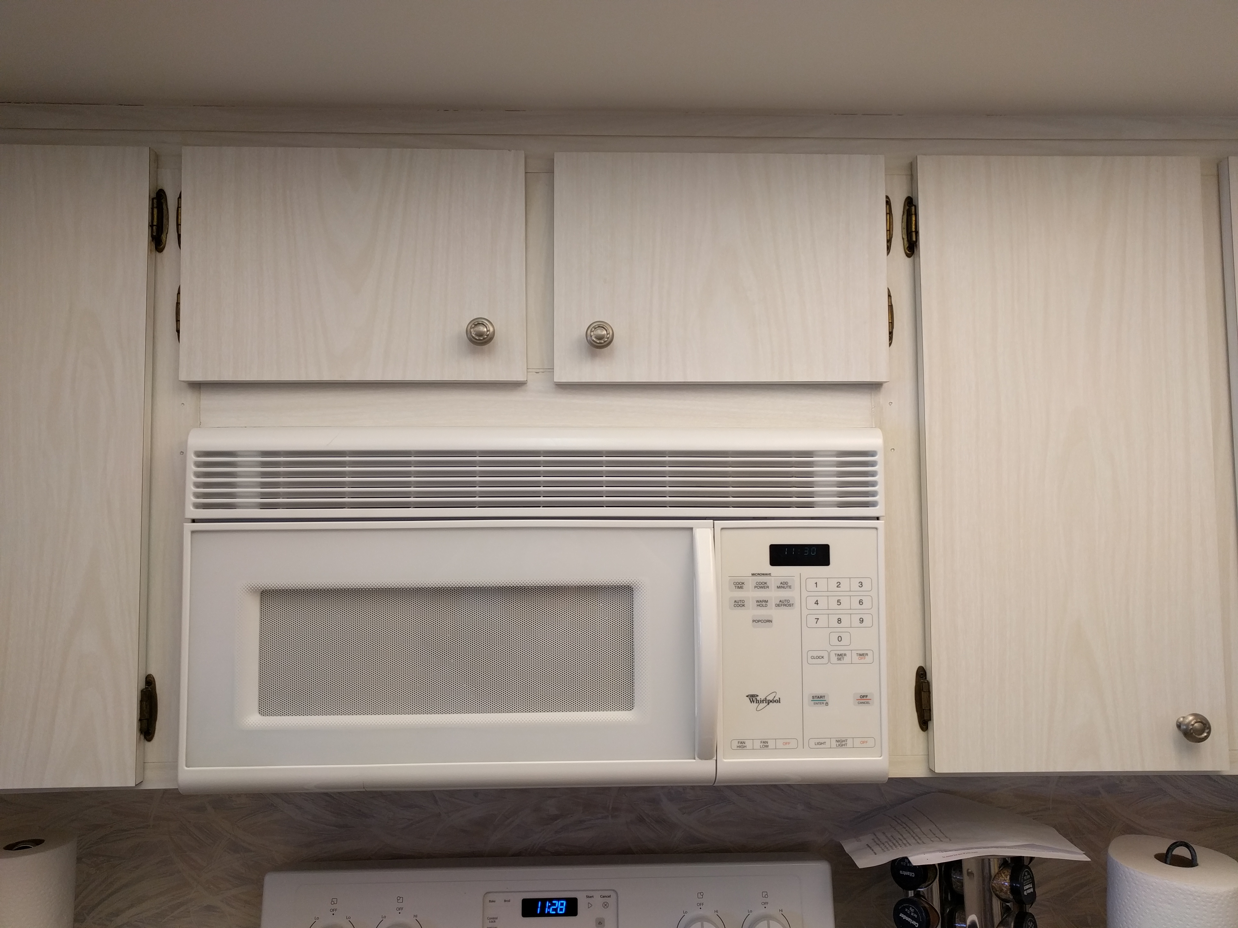 First we have to find a new home for all the liquor bottles (and drinking them all at once is not an option), then we have to take down the microwave