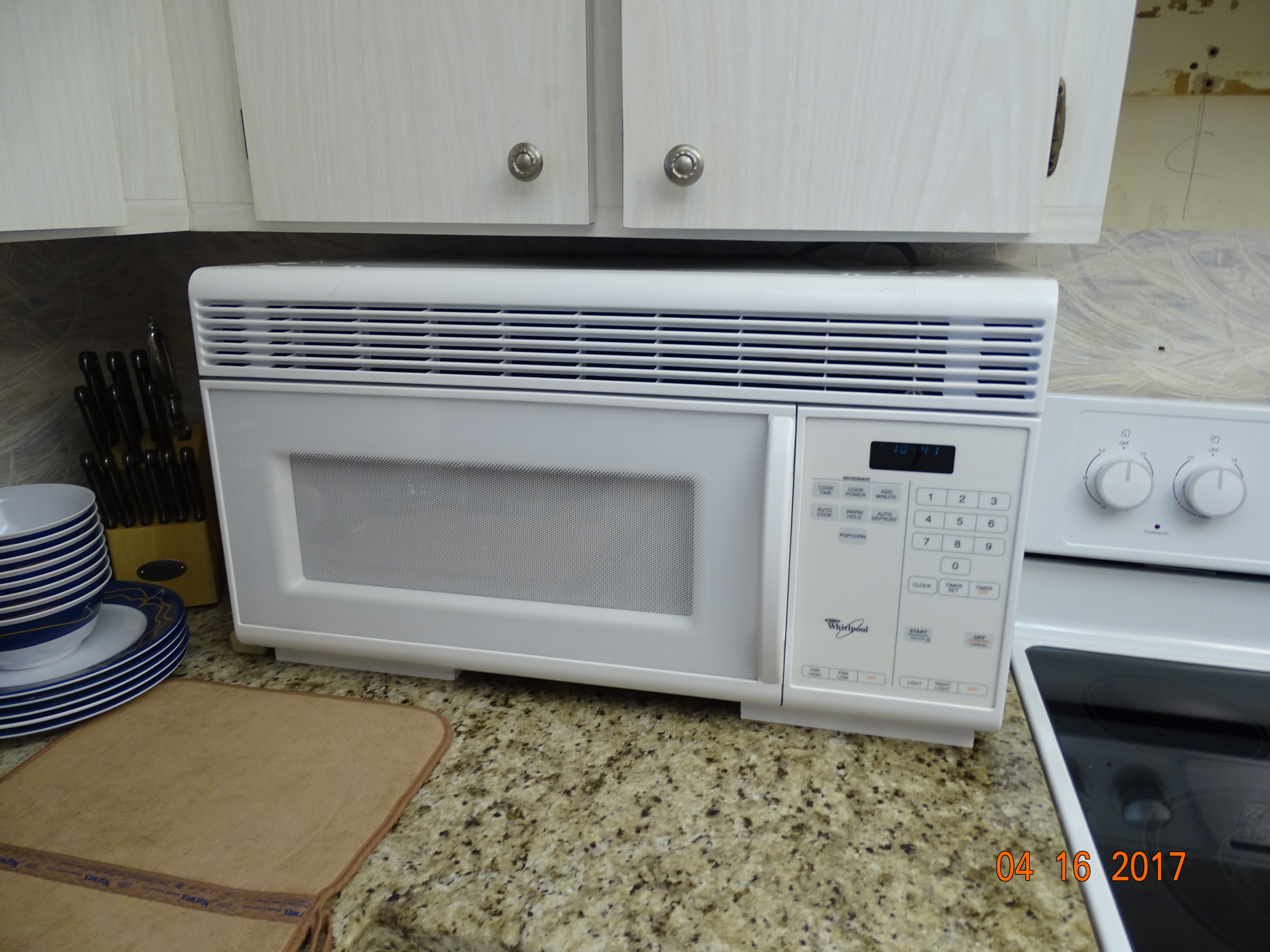the microwave is not hot wired in. That looks like a pretty beefy electrical cord though. And see the cement behind the cupboard? We’re not afraid of no stinkin tornadoes here.