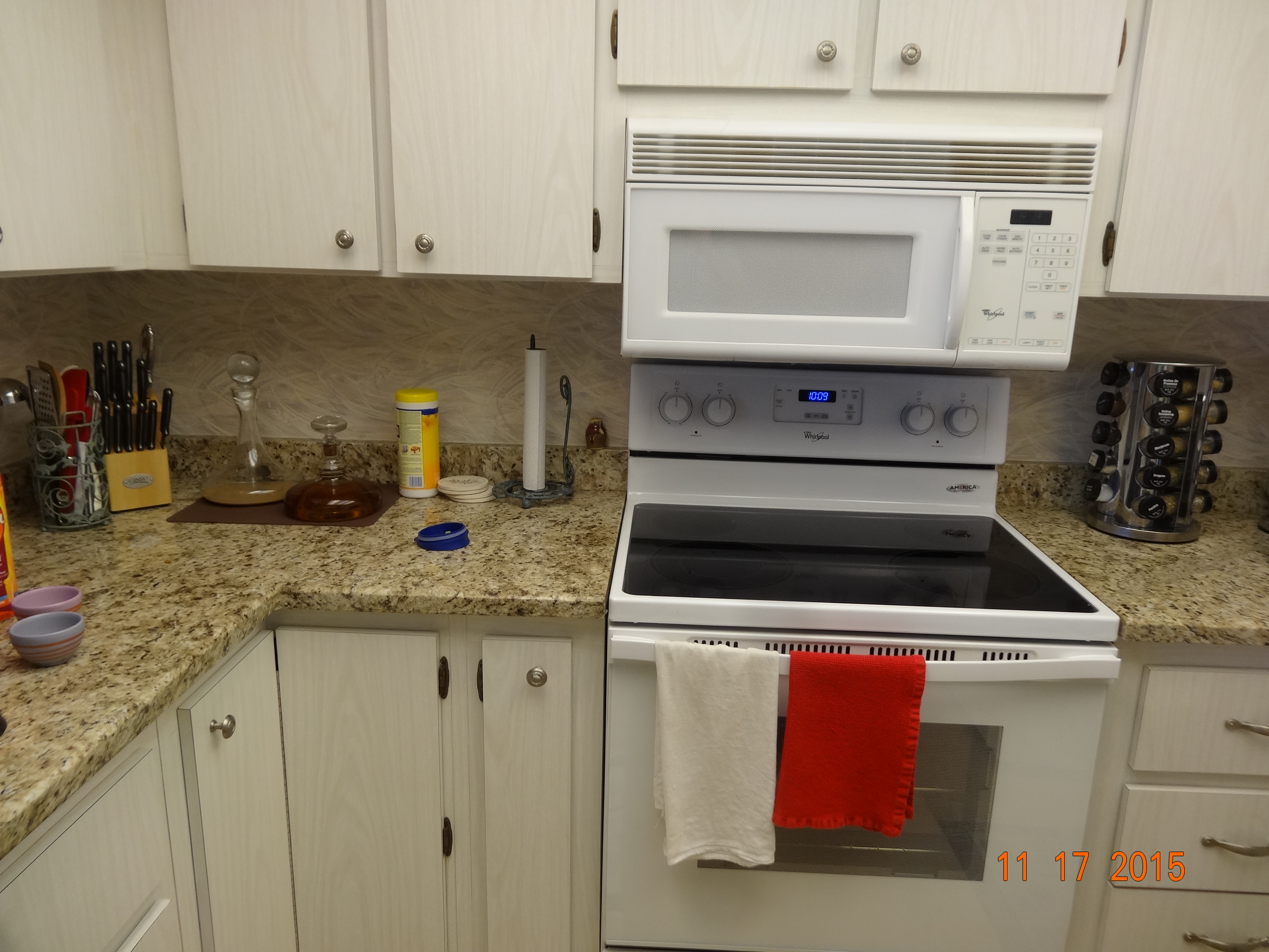 In all seriousness we do need some work in that room. We do have relatively new granite counter tops, and the appliance are newer, but as you can see from this picture