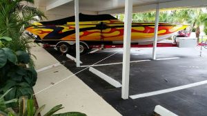 We finished up pretty late in the day and by then our neighbor got home from work and he wanted Gary to help him get his boat off his lift and onto his trailer