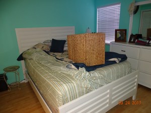 and put them on the kitchen counter tops. I went thru my pots and pans and pulled my favorites out and put them on the counter tops. I went thru the bedrooms and we pulled up the bed spreads and piled what ever we wanted to keep on top of the beds