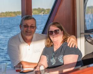 It was a lot of fun cruising the river and seeing how the other half lives ;). While we were on board, I received a “code red” alert on my phone. It said they there was a mandatory evacuation in Zone A. Where do you think we live? Yup, right in zone A. Good thing we were already evacuated. At least we could drink away our worries at a nice dinner party :).