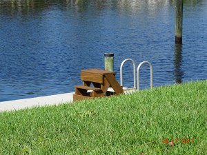 And what comes out unscathed by the hurricane? Our neighbors wooden steps on the dock